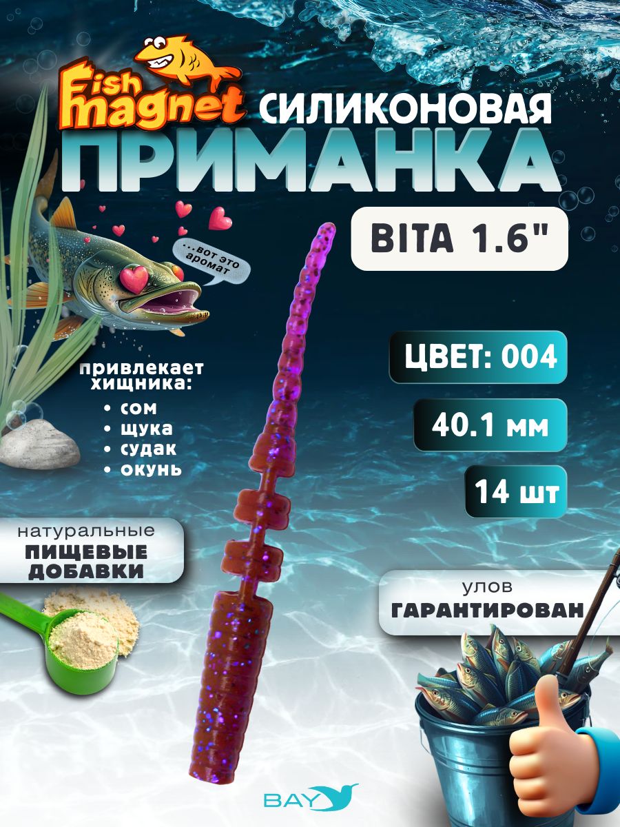 Силиконовая приманка пассивная съедобная Fish Magnet BITA 1.6" (40.1 мм), цвет 004, 14 шт на рыбалку для окуня