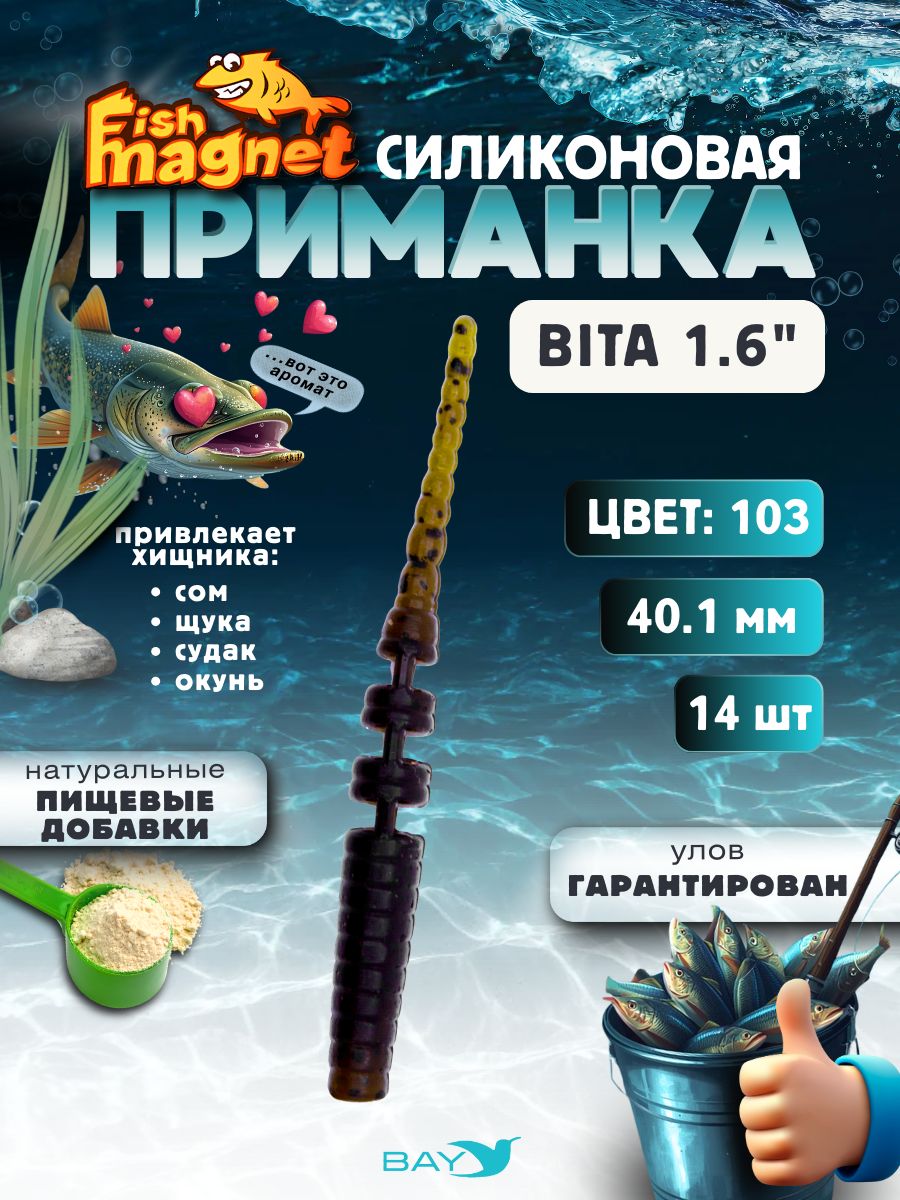 Силиконовая приманка пассивная съедобная Fish Magnet BITA 1.6" (40.1 мм), цвет 103, 14 шт на рыбалку для окуня