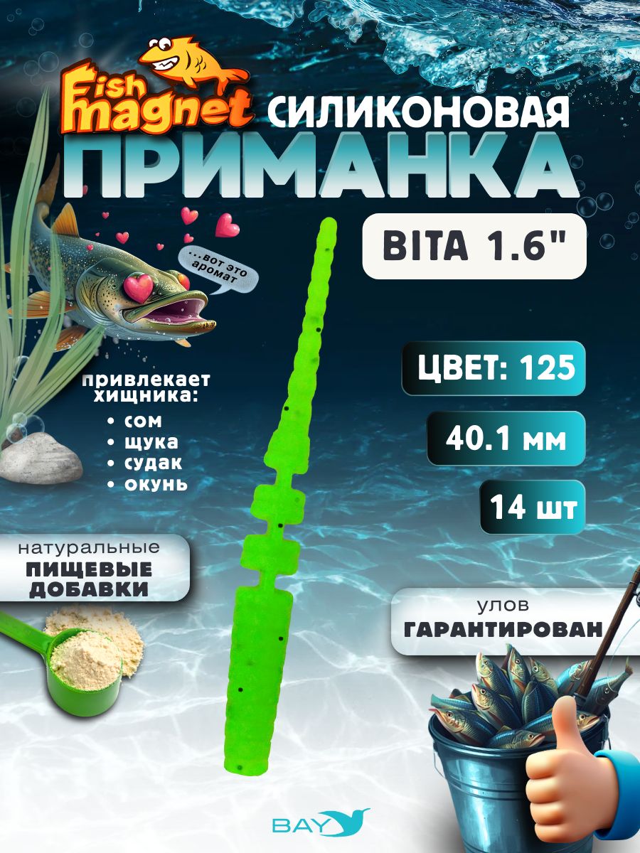 Силиконовая приманка пассивная съедобная Fish Magnet BITA 1.6" (40.1 мм), цвет 125, 14 шт на рыбалку для окуня
