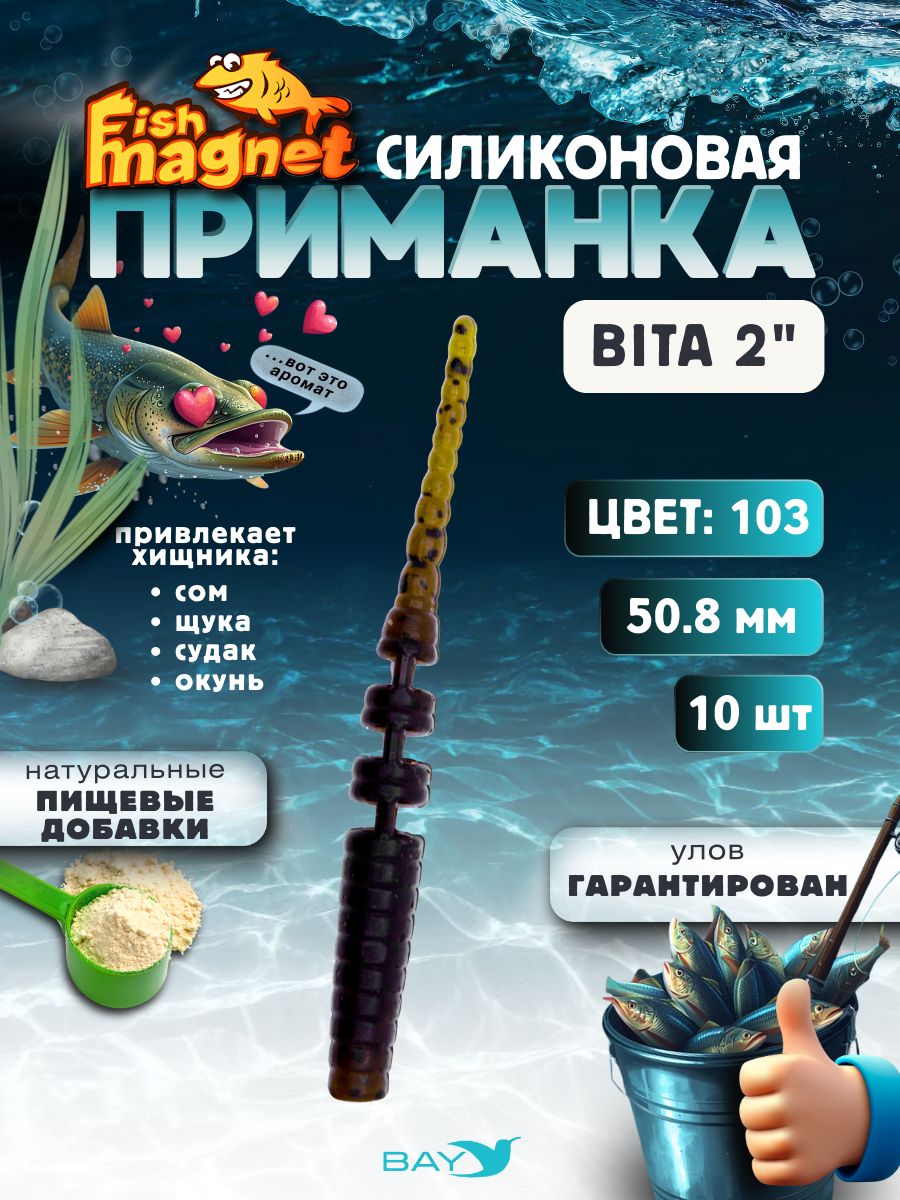 Силиконовая приманка Fish Magnet BITA — это высококачественная мягкая съедобная приманка, разработанная специально для максимально естественной игры в воде. Благодаря уникальной геометрии тела и использованию мягкого силикона с пищевыми добавками, приманка движется как настоящая личинка, насекомое или червь, провоцируя рыбу на уверенную атаку.