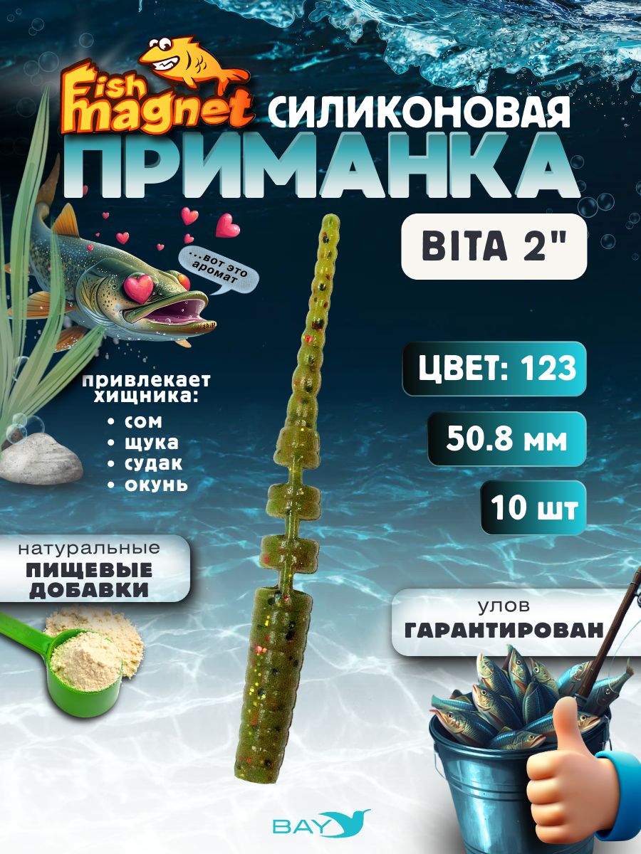 Силиконовая приманка пассивная съедобная Fish Magnet BITA 2" (50.8 мм), цвет 123, 10 шт на рыбалку для окуня