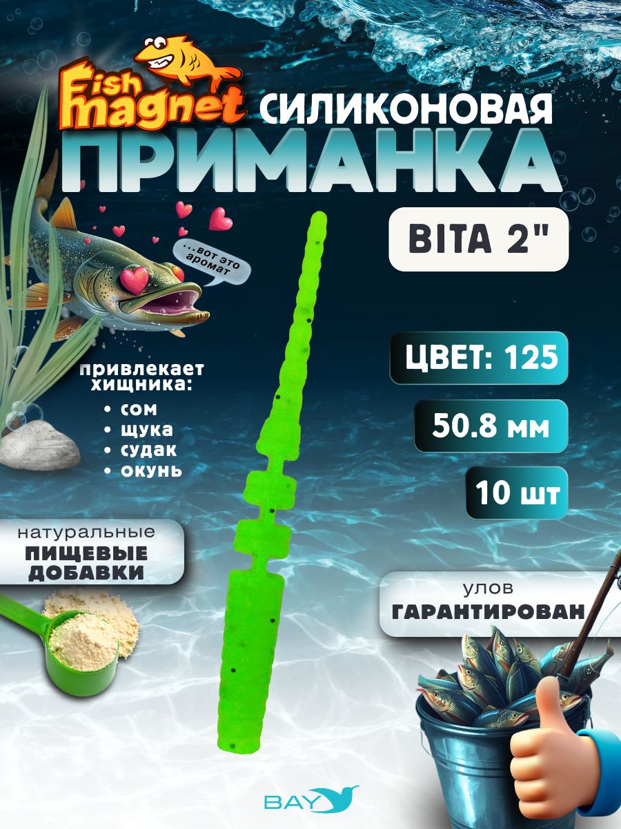 Силиконовая приманка пассивная съедобная Fish Magnet BITA 2" (50.8 мм), цвет 125, 10 шт на рыбалку для окуня