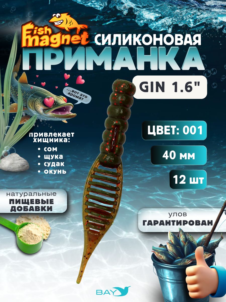 Силиконовая приманка съедобная Fish Magnet GiN 1.6 цвет 001, размер 40 мм, 12 шт мягкая, эластичная, с прорезью под офсет, активный хвост для окуня и хищной рыбы