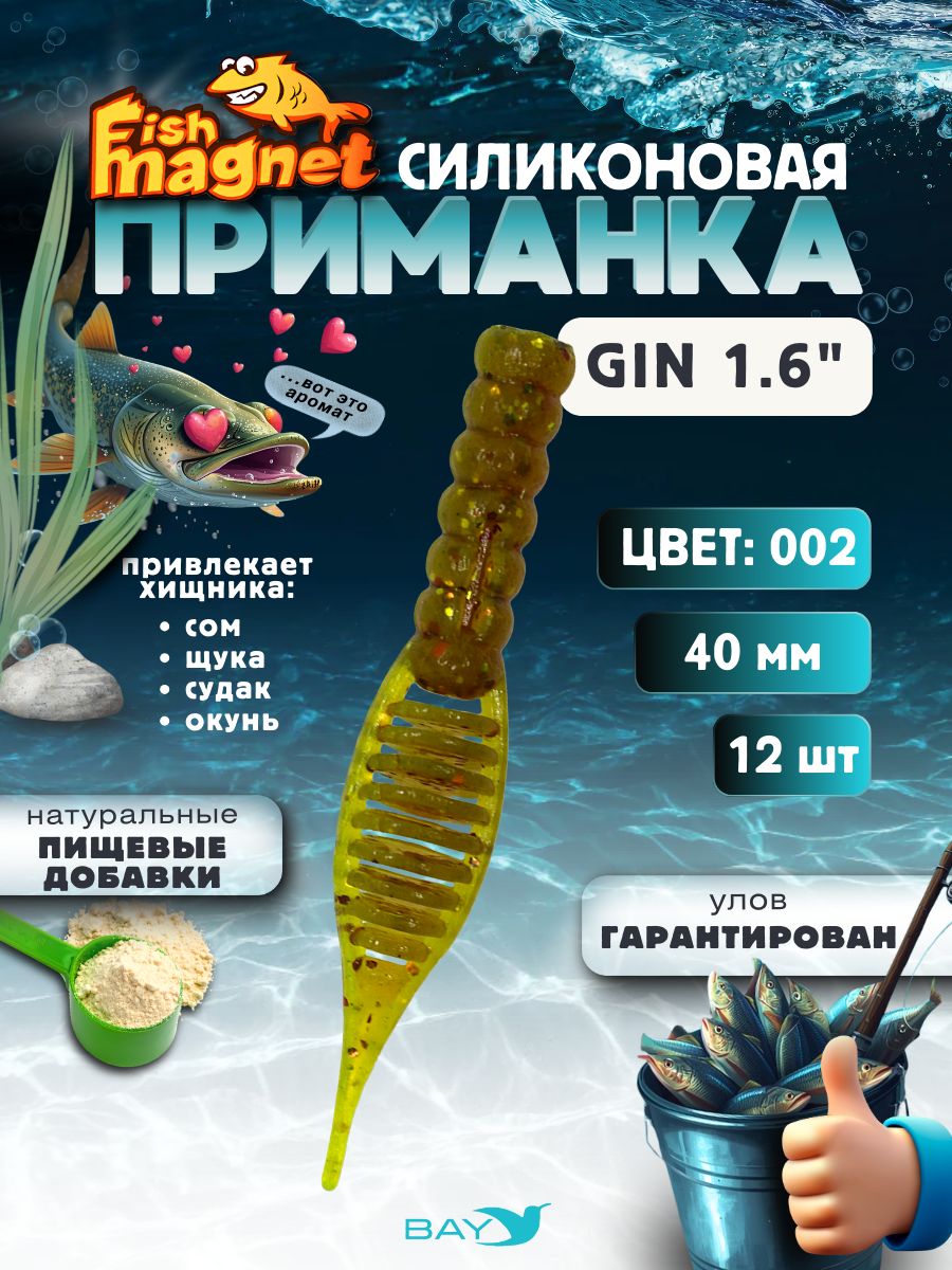 Силиконовая приманка съедобная Fish Magnet GiN 1.6 цвет 002, размер 40 мм, 12 шт мягкая, эластичная, с прорезью под офсет, активный хвост для окуня и хищной рыбы