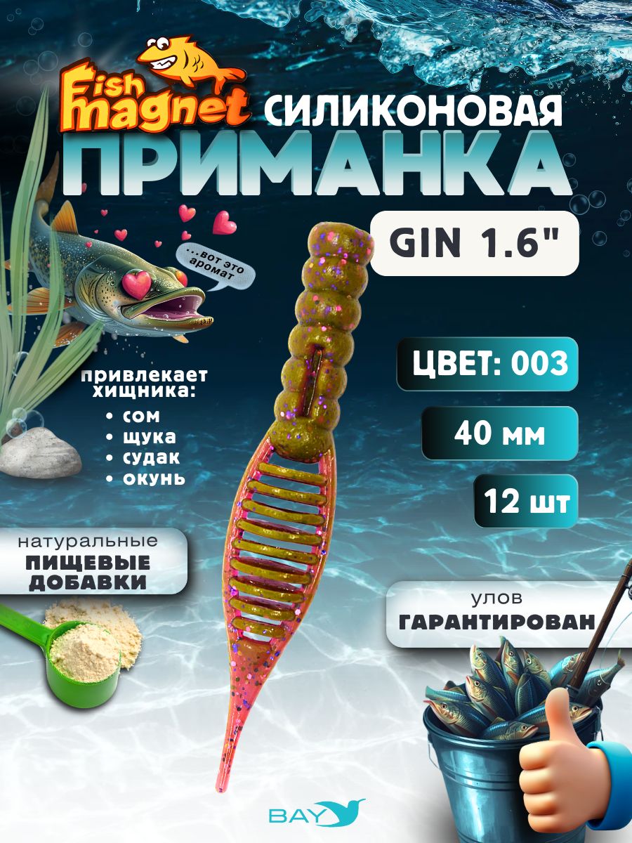 Силиконовая приманка съедобная Fish Magnet GiN 1.6 цвет 003, размер 40 мм, 12 шт мягкая, эластичная, с прорезью под офсет, активный хвост для окуня и хищной рыбы