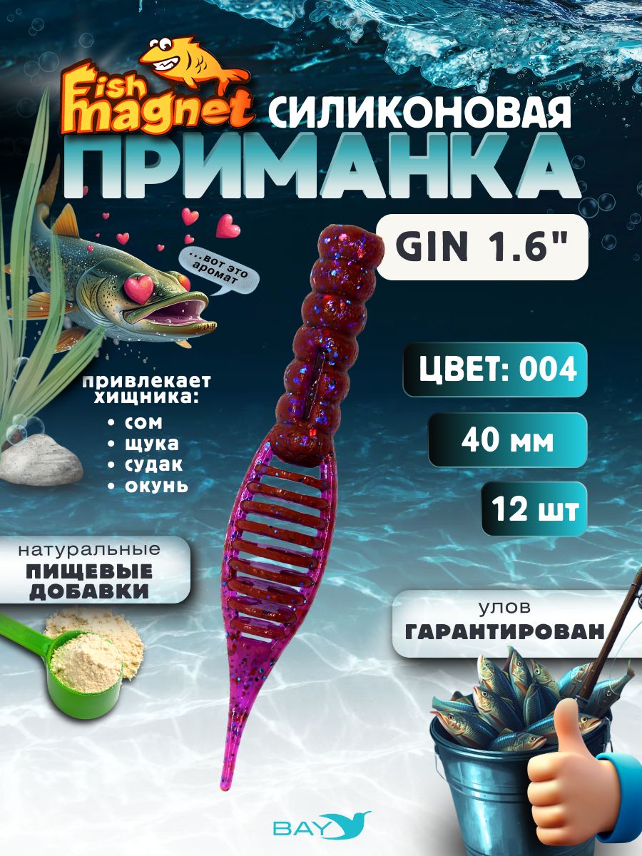Силиконовая приманка съедобная Fish Magnet GiN 1.6 цвет 004, размер 40 мм, 12 шт мягкая, эластичная, с прорезью под офсет, активный хвост для окуня и хищной рыбы