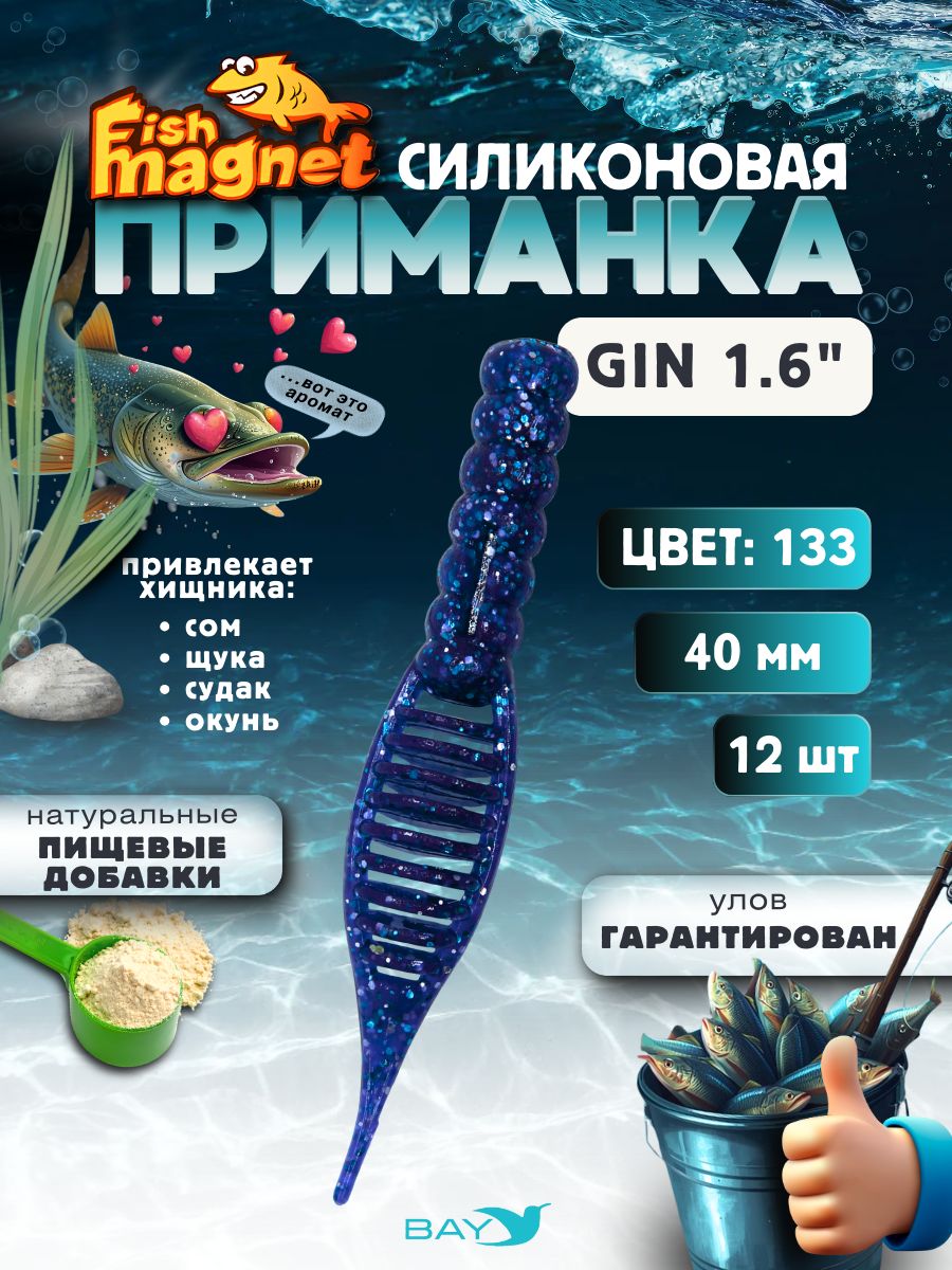 Силиконовая приманка съедобная Fish Magnet GiN 1.6 цвет 133, размер 40 мм, 12 шт мягкая, эластичная, с прорезью под офсет, активный хвост для окуня и хищной рыбы