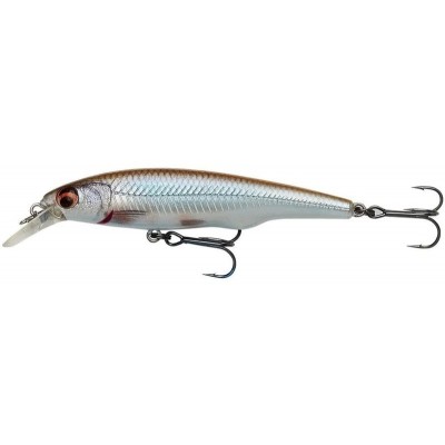 Воблер-минноу с магнитной системой дальнего заброса. Скользящий по направляющей цилиндр упрощает дальний и точный заброс. Встроенная шумовая капсула. При равномерной проводке приманка раскачивается из стороны в сторону, сохраняет баланс при сильном течении. Приманка с деталями фотопечати реалистично изображает малька. Воблер замирает на паузах при проводке, провоцируя рыбу на атаку. Рекомендован для ловли окуня, щуки, форели, жереха, окуня и лосося.
