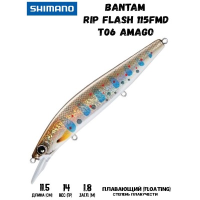 Воблер SHIMANO Bantam Rip Flash 115FMD 115mm 14g T06 Amago