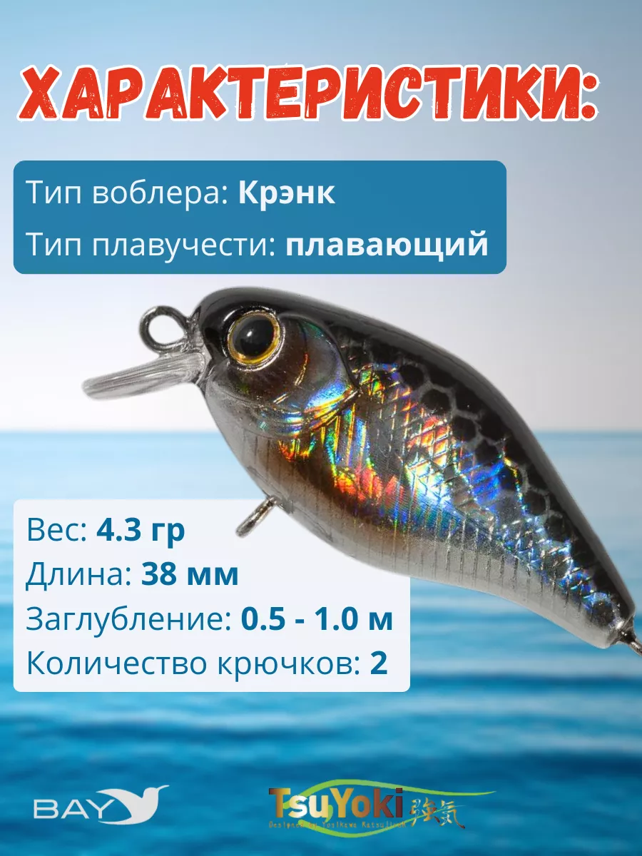 Технические параметры: Плавающий (F), длина 38 мм, вес 4,3 гр, заглубление 0,5 - 1,0 метра. Кренк для ловли окуня, голавля, язя и других хищных рыб как на течении, так и в стоячей воде. Ловля дикой ручьевой, а так же запускной форели на платных водоемах. Особенности дизайна: CHEF 38F имеет две, разделенные боковой линией, рельефные фактуры поверхности, имитирующие чешуйки . Верхняя часть выполнена в виде ромбовидных насечек , нижняя в виде косых насечек. Головная часть воблера рельефно выполнена в виде жаберных крышек рыбки, а вклеенные 3D глаза дополняют реалистичный дизайн приманки. CHEF 38F оснащен системами баланса и дальнего заброса. Шарики системы баланса создают ненавязчивый звуковой эффект при проводке приманки. В оснащении воблера использованы два тройника Owner Cultiva, качественная фурнитура и заводные кольца. Приманка, включая высокий уровень лако-красочного покрытия, соответствует самым современным требованиям. Заброс и анимация: С удилищем 7,6 фута до 12 гр и шнуром # 0,6 CHEF 38F при тестах улетал к отметке 35 метров. Приманка хорошо пробивает умеренный боковой ветер. Базовая проводка для CHEF 38F – равномерная, с разной скоростью подбора шнура катушкой. При ловле с CHEF 38F стоит обязательно пробовать и различные варианты «стоп-энд-гоу». В паузе приманка всплывает, покачивая боками, что может соблазнить нерешительного хищника на поклевку. При ловле с лодки сплавом дальность и точность заброса с CHEF 38F могут оказаться решающим преимуществом. Особенно, когда требуется доставить приманку к локальной стоянке голавля около коряжки, под нависающие над водой ветви деревьев или точно к началу крутой береговой бровки. На реке с быстрым течением при береговой ловле или рыбалке с заякоренной лодки возможна ловля на снос поперек струи с контролем проводки удилищем. CHEF 38F уверенно чувствует себя на течении, хорошо управляется движениями удилища и четко держит задаваемый ему горизонт проводки.