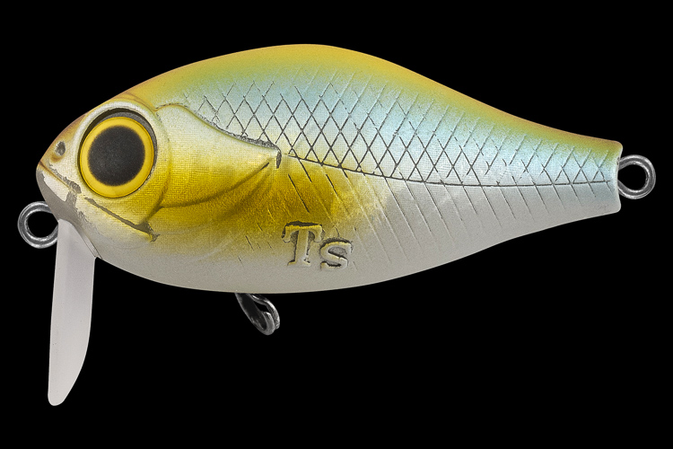 Особенности дизайна: DROP SSR 45F имеет характерную для крэнков толстую и короткую форму тела, резко сужающуюся к носовой и хвостовой частям приманки. По бокам - две рельефные фактуры поверхности, разделенные боковой линией. Верхняя часть (спинка и бока) выполнена в виде ромбовидных насечек - чешуек, нижняя - в виде косых насечек. Головная часть воблера рельефно имитирует жаберные крышки. Вклеенные объемные глаза завершают дизайн приманки.