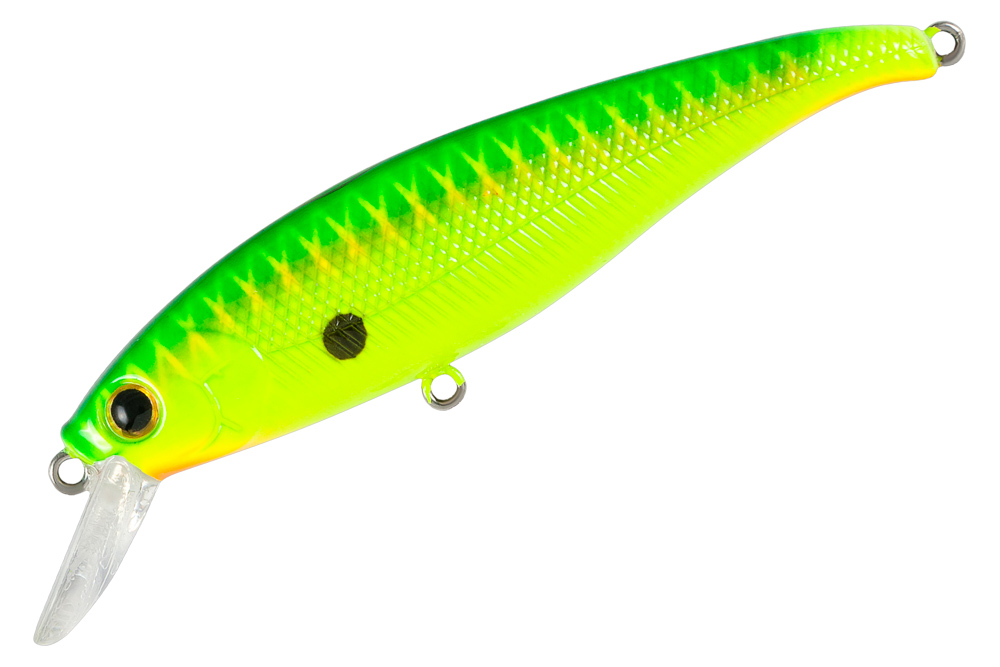 Воблер TsuYoki BRUT 80SP Воблер BRUT 80SР мы относим к отряду воблеров “minnow”, но данная модель имеет более широкий корпус,чем принято, что делает ее более заметной для хищника. Форма тела и размеры воблера имитирует большинство кормовых видов рыб,обитающих в наших водоемах. Воблер BRUT 80SP предназначен для облова неглубоких мест различных водоемов, будь это река или водохранилище. Внутреннее строение воблера состоит из нескольких балансировочных шаров, находящихся в спец. капсулах и двух свинцовых пластин, которые смещают центр тяжести воблера максимально вниз. Из этого описания понятно, что в воблере нет перемещающихся металлических элементов, а значит воблер является ” глухим”, что не мало важно при ловли в запрессованных водоемах осторожного хищника. При беглом осмотре воблера нельзя не заметить загнутый хвост модели. Этот “крючок” выполняет важную роль. При анимации методом твичинг BRUT 80SP получает импульс от удилища и начинает свободное скольжение в толще воды, но в какой то момент загнутый хвост подтормаживает движение и воблер уходит в занос. Полностью завалиться ему не дает низко расположенный центр тяжести, возникает эффект ” неволяшки”, Воблер совершает несколько затухающих движений,вдоль поперечной оси, скользя по инерции вперед. Именно эта ” дрожь” действует неотразимо на хищника, как красная тряпка на быка,заставляя его атаковать воблер. Благодаря этому инженерному решению мы также добиваемся стабильности поведения воблера в воде при твичинге. Найденный нами экспериментально и закрепленный на практике в различных регионах РФ алгоритм выглядит так. Один, два несильных рывка удилища с обязательной отдачей шнура и пауза, до пяти секунд, во время которой чаще всего и происходит поклевка. В отличии от многих рывковых приманок воблер BRUT 80SP от TsuYoki также хорошо и стабильно работает и на равномерной проводке, что иногда делает его незаменимым при ночной ловли судака. Воблер оснащен крючками фирмы VMC, надежными заводными кольцами, имеет прочное ЛКП. Минноу Суспендер (SP) 80 мм 10,3 гр Заглубление 1,2-1,8 м