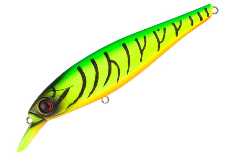 Воблер TsuYoki DRAGA 100SP Воблер DRAGA 100SP от TsuYoki мы относим к отряду ” big minnow “, но не только из-за размера воблера, хотя 100 мм и 17.3 гр веса, довольно весомый аргумент для занесения в это легендарное подразделение. Этот воблер прописан там по способности подымать щуку с глубин, заметно превышающих собственное заглубление приманки. Давайте подробно разберем эту модель: Итак, воблер DRAGA 100SP предназначен для ловли, в первую очередь щуки, во всех местах, с фоновой глубиной до четырех метров. Система балансировки воблера состоит из свинцовой пластины, расположенной в головной части воблера и нескольких стальных шаров,перемещающихся по индивидуально выделенному, для каждого шара каналу.Магнитной системы нет. По этой причине воблер немного не стабильно ведет себя в фазе полета, но солидный собственный вес достаточно хорошо сглаживает этот небольшой недостаток. После приводнения, воблер довольно быстро выходит на свой рабочий горизонт (где- то 1.3-1.6 метра, в зависимости от толщины шнура) который стабильно держит все время. При равномерной проводке приманка показывает вальяжную игру, со средне-частотными характеристиками. Но, свои лучшие качества DRAGA 100SP показывает при анимации методом твичинг. При твичинге воблер стремительно и широко рыщет по сторонам, легко разворачивается,показывая свой живот при этом. На паузах воблер обладает остаточными колебаниями, сводящими с ума пассивного хищника. Не упорист. Легок в управлении. При наличии течения допускает проводку ” по течению” без потери рабочих качеств. С поводком становится чистым суспендерм, что также положительно сказывается при работе в холодной воде по пассивному хищнику. Оснащен тройниками OWNER и набором силовых колец. Широкая цветовая гамма позволяет подобрать воблер под любые условия ловли. Мы считаем, что этого набора качеств достаточно для прописки воблера в Вашей коробке. Минноу Суспендер (SP) 100 мм 17,3 гр Заглубление 0,2-1,4 м