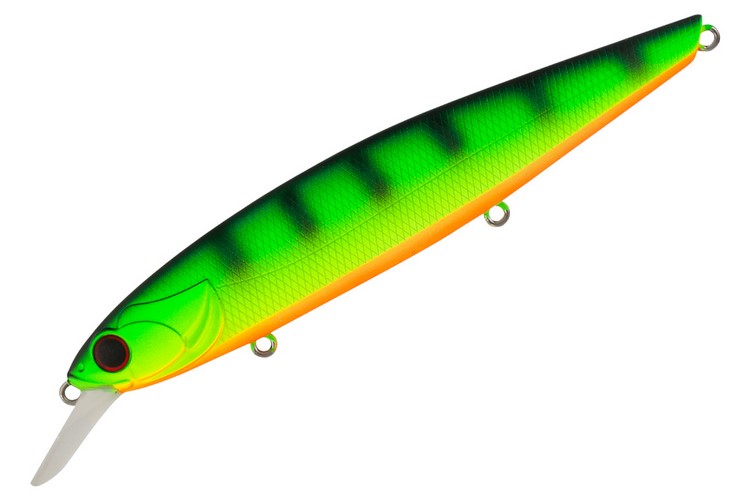 Воблер TsuYoki DRAGA 130SP Bоблер DRAGA 130SP обладает внушительными физическими габаритами, и по этому показателю и по способности воблера подымать хищника с больших глубин,мы относим DRAGA 130SP TsuYoki к классу big-minnow. Внутренние устройство воблера представляет из себя систему, состоящею из нескольких стальных шаров. Часть из них ограниченно перемещаются внутри воблера,они отвечают за балансировку и придают воблеру остаточные колебания на паузах. Один шар, отвечающий за дальность заброса, свободно катается по самому длинному каналу. В момент заброса он скатывается в хвост воблера и находится там в течение всей фазы полета. При приводнение, после первой потяжки, шар перемещается в головную часть воблера, где и находится все время проводки. Из-за того, что DRAGA 130SP не имеет магнитной системы заброса и балансировки, мы рекомендуем производить заброс с длинного свиса -70-80 сантиметров и плавного разгона приманки. При таком способе заброса в полете воблер ведет себя стабильно. Спектр рекомендуемых проводок данной модели довольно широк, нет смысла подробно разбирать каждую из них,отметим только, что не смотря на то, что воблер DRAGA 130SP не упорист, мы все же рекомендуем при работе с ним использовать удилища быстрого и сверх быстрого строя, соответствующего теста. Мы предполагаем, что добычей данной модели будут щука и крупный окунь, в меньшей степени-судак. Воблер оснащен качественными тройниками , комплектом силовых колец. Широкая цветовая гамма модели позволит Вам подобрать воблер, под любые условия ловли. Минноу Суспендер (SP) 130 мм 24,3 гр Заглубление 0,2-1,8 м