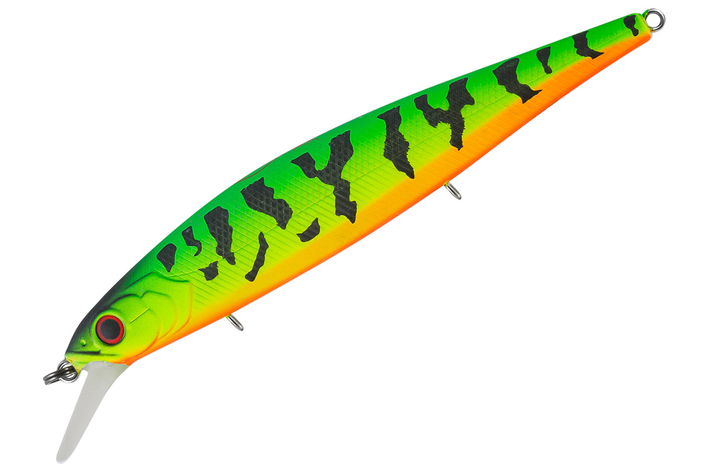 Воблер TsuYoki FLIRT 115SP Средне-размерный минноу нейтральной плавучести для ловли на глубинах 2-2,5 метра. Особенности дизайна: FLIRT 115SP имеет две, разделенные боковой линией, рельефные фактуры поверхности. Верхняя часть (спинка и бока) выполнена в виде ромбовидных насечек - чешуек, нижняя (вплоть до брюшка) в виде косых насечек. Головная часть воблера рельефно имитирует жаберные крышки. Объемные 3D глаза завершают реалистичный дизайн приманки. FLIRT 115SP имеет систему дальнего заброса и баланса , а так же встроенную шумовую камеру с мелкими шелестящими шариками. Приманка оснащена тремя тройниками VMC BN. Качество лако-красочного покрытия соответствует всем современным требованиям. Заброс и анимация: Благодаря системе дальнего заброса и общей геометрии FLIRT 115SP летит на 35+ метров. Тесты на дальность проводились с комплектом: Удилище длиной 8 фута быстрого строя (Fast), тест 5-21 гр, катушка магниевый корпус 3000 по линейке Шимано, шнур #1,2. При работе с FLIRT 115SP нужно использовать весь арсенал проводок, от равномерной до рывковой. На равномерной проводке воблер имеет очень приятную широкоамплитудную, и при этом низкочастотную собственную игру. При использовании стоп энд гоу (протяжка с с паузой или несколько оборотов катушки с паузой) воблер в паузе медленно всплывает, немного покачиваясь. На самой протяжке бликует и немного показывает бока. На рывковой анимации FLIRT 115SP ведет себя очень отзывчиво и послушно. Если анимировать его короткими, но достаточно резкими рывками, то воблер разворачивается на 90+ градусов практически на месте, в момент самого рывка активно показывает бока. На одном обороте катушки можно выполнить два рывковых цикла (по 2 рывка) с паузой. Если делать рывок более мягким и продолжительным, то воблер ,чуть меньше разворачиваясь, скользит в сторону от оси проводки. При этом роллинг и блики имеют место быть. В общем, поле для экспериментов и творчества в рывковой анимации FLIRT 115SP обширно, и каждый найдет для себя самый уловистый вариант твичинга. При всех вариантах анимации воблер отлично держит заданный горизонт заглубления. Наше мнение - FLIRT 115SP отличный воблер для охоты за щукой над коряжниками и кормовыми поливами. Будет востребован и при ночной ловле судака. С поводком 12 см #1 FLIRT 115SP медленно всплывает (SF). Если применять более длинный и мощный поводок (струна #2 длинной 20 см) , воблер станет чистым суспендером. Наличие поводка на анимацию влияния не оказывает. Комплект снастей: Удилище длиной 7,0-8,0 фута быстрого строя , тест до 25-30 гр, катушка 3000 по линейке Шимано, шнур #1,2. Миноу Суспендер (SP) 115 мм 16,5 гр Заглубление 1,0-1,8 м