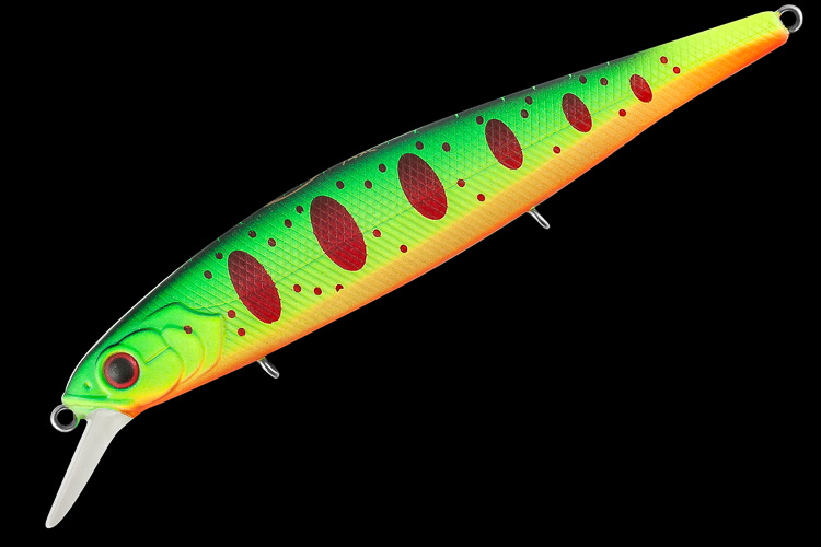 Воблер TsuYoki FLIRT 115SP Средне-размерный минноу нейтральной плавучести для ловли на глубинах 2-2,5 метра. Особенности дизайна: FLIRT 115SP имеет две, разделенные боковой линией, рельефные фактуры поверхности. Верхняя часть (спинка и бока) выполнена в виде ромбовидных насечек - чешуек, нижняя (вплоть до брюшка) в виде косых насечек. Головная часть воблера рельефно имитирует жаберные крышки. Объемные 3D глаза завершают реалистичный дизайн приманки. FLIRT 115SP имеет систему дальнего заброса и баланса , а так же встроенную шумовую камеру с мелкими шелестящими шариками. Приманка оснащена тремя тройниками VMC BN. Качество лако-красочного покрытия соответствует всем современным требованиям. Заброс и анимация: Благодаря системе дальнего заброса и общей геометрии FLIRT 115SP летит на 35+ метров. Тесты на дальность проводились с комплектом: Удилище длиной 8 фута быстрого строя (Fast), тест 5-21 гр, катушка магниевый корпус 3000 по линейке Шимано, шнур #1,2. При работе с FLIRT 115SP нужно использовать весь арсенал проводок, от равномерной до рывковой. На равномерной проводке воблер имеет очень приятную широкоамплитудную, и при этом низкочастотную собственную игру. При использовании стоп энд гоу (протяжка с с паузой или несколько оборотов катушки с паузой) воблер в паузе медленно всплывает, немного покачиваясь. На самой протяжке бликует и немного показывает бока. На рывковой анимации FLIRT 115SP ведет себя очень отзывчиво и послушно. Если анимировать его короткими, но достаточно резкими рывками, то воблер разворачивается на 90+ градусов практически на месте, в момент самого рывка активно показывает бока. На одном обороте катушки можно выполнить два рывковых цикла (по 2 рывка) с паузой. Если делать рывок более мягким и продолжительным, то воблер ,чуть меньше разворачиваясь, скользит в сторону от оси проводки. При этом роллинг и блики имеют место быть. В общем, поле для экспериментов и творчества в рывковой анимации FLIRT 115SP обширно, и каждый найдет для себя самый уловистый вариант твичинга. При всех вариантах анимации воблер отлично держит заданный горизонт заглубления. Наше мнение - FLIRT 115SP отличный воблер для охоты за щукой над коряжниками и кормовыми поливами. Будет востребован и при ночной ловле судака. С поводком 12 см #1 FLIRT 115SP медленно всплывает (SF). Если применять более длинный и мощный поводок (струна #2 длинной 20 см) , воблер станет чистым суспендером. Наличие поводка на анимацию влияния не оказывает. Комплект снастей: Удилище длиной 7,0-8,0 фута быстрого строя , тест до 25-30 гр, катушка 3000 по линейке Шимано, шнур #1,2. Миноу Суспендер (SP) 115 мм 16,5 гр Заглубление 1,0-1,8 м