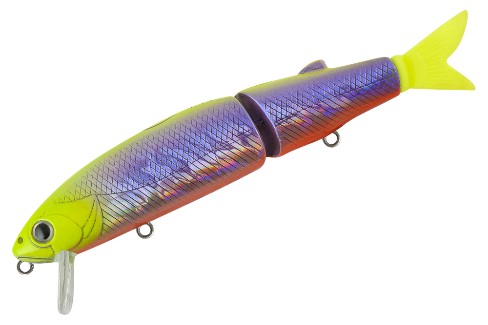 Воблер TsuYoki GOT 115SP Двухсоставной воблер класса минноу для ловли на мелководье, над подводной растительностью ,вдоль стенок камыша, в окнах и проходах среди кувшинок. Особенности дизайна: GOT 115SP имеет подвижное двухсоставное тело с заменяемым силиконовым хвостиком. Воблер имеет две, разделенные боковой линией, рельефные фактуры поверхности. Верхняя часть выполнена в виде ромбовидных насечек - чешуек, нижняя в виде косых насечек. Головная часть приманки имитирует голову реальной рыбки, от рельефных жаберных крышек до реалистичных 3D глаз. Имеется система баланса, шары которой еще и гремят при проводке, заменяя шумовую камеру. Оснащение GOT 115SP двумя тройниками Cultiva Owner соответствующего размера, качественной фурнитурой и силовыми заводными кольцами придает воблеру законченный и солидный внешний вид. Качество исполнения приманки , включая ЛКП, на высоком уроне. Заброс и анимация : Дальность заброса GOT 115 SP составляет 25-27 метров. Для тестов на дальность использовался комплект из удилища длиной 7,6 фута до 32 гр быстрого строя, катушки 3000 по линейке Шимано, шнура #1,2 по японской классификации. Анимация GOT 115SP должна включать в себя все методы, применяемые с воблерами класса минноу. Внутренняя система баланса в виде шаров равномерно распределена по обеим частям приманки. Это позволяет GOT 115SP занимать идеальное положение в толще воды при всех элементах анимации. На равномерной проводке приманка имеет собственную игру, рисуя в воде очень соблазнительную «змейку» и заглубляется при этом до 0,5-0,7 метра. Сочетание равномерной проводки с выраженными паузами (стоп-энд-гоу) – обязательный элемент в анимации GOT 115SP. На паузах воблер всплывает с небольшими колебаниями. При рывковой проводке важно использовать разную интенсивность рывков. Воблер на них отзывается легко и очень послушно, выполняя развороты с активной игрой хвостовой части в самой амплитудной фазе рывка. Сочетая все предложенные элементы анимации, рыболов имеет возможность создать именно тот рисунок проводки GOT 115SP, который именно сейчас будет востребован потенциальным трофеем. Легкий поводок 25 см из струны не оказывает радикального влияния на плавающие свойства GOT 115SP, лишь немного замедляя всплытие и давая небольшой дифферент на носовую часть в паузах. Оптимальный комплект снастей: Удилище длиной 7,0-8,0 фута быстрого строя , тест до 21-32 гр, катушка 3000 по линейке Шимано, шнур #1,2 Составник Суспендер (SP) 115 мм 14,7 гр Заглубление 0,5-1,0 м