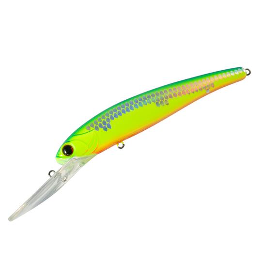 Воблер TsuYoki JASS 90F JASS 90F предназначен для ловли такой трофейной рыбы как судак, щука,сом методом троллинг. При отпуске шнура ( 0.2 мм ) около 40 -метров и скорости катера 3.5 - 4.0 км / час воблер заглубляется глубже 3,5 метров, показывая при этом малоамплитудную высокочастотную игру, характерную для приманок хорошо работающих по судаку. Также данной моделью можно ловить и “в заброс”, равномерной проводкой, но надо помнить,что TsuYoki JASS 90F упористый воблер, поэтому надо подбирать удилище соответствующего теста. Лучших результатов при использовании равномерной проводки можно добиться если воблер будет время от времени касаться дна, выбивая фонтанчики мути. Не надо бояться зацепов при этом - большая лопатка воблера надежно закрывает крючки. Широкая цветовая гамма позволит Вам без труда подобрать воблер под любые условия ловли. JASS 90F оснащен тройниками OWNER и комплектом силовых колец. Минноу Плавающий (F) 90 мм 12 гр Заглубление 1,8-3,5 м