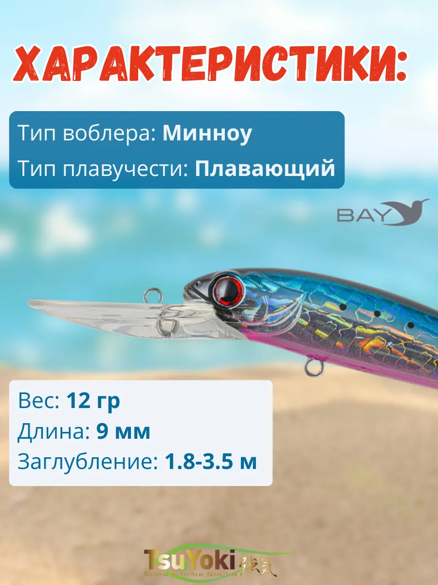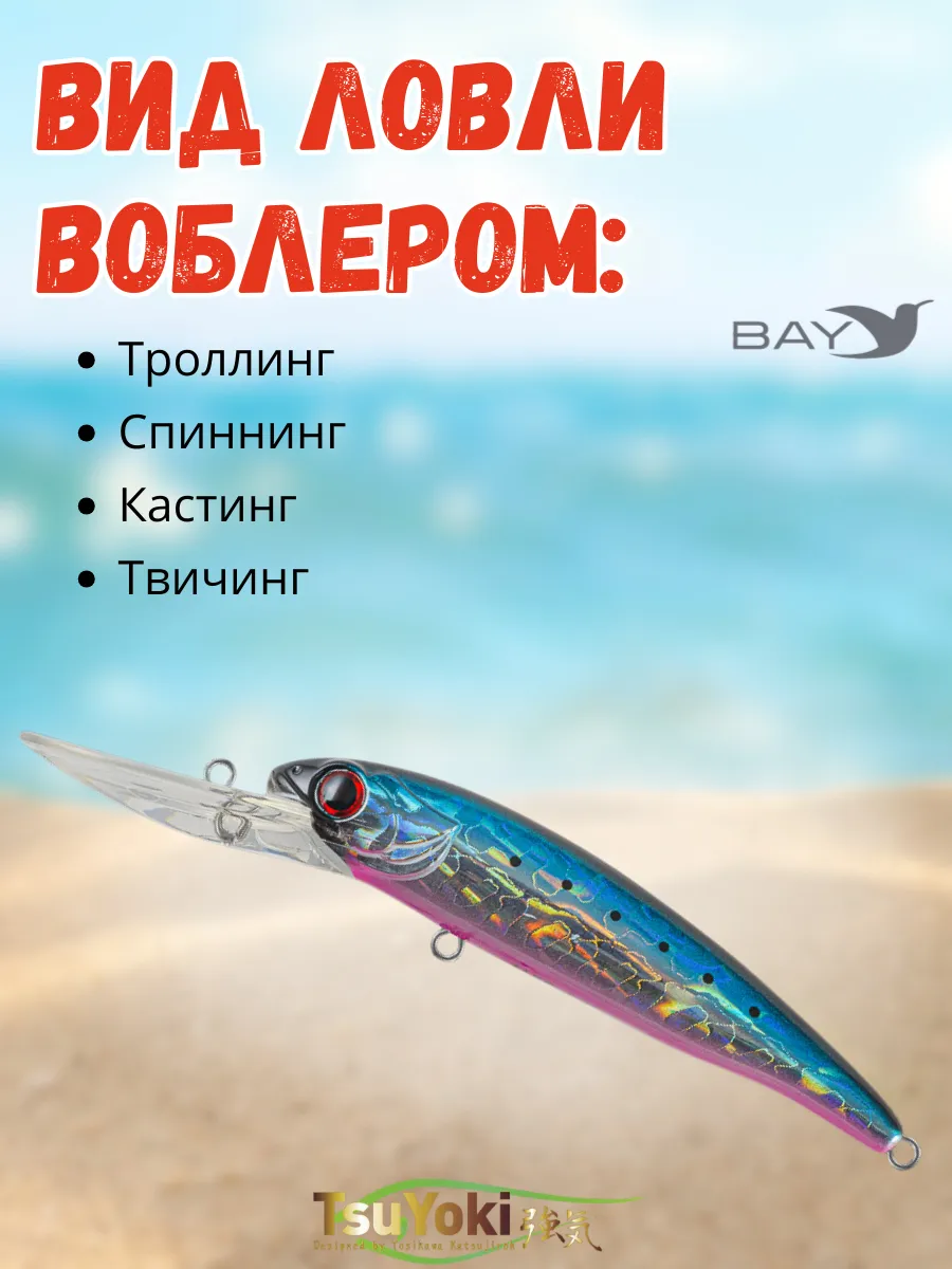 Воблер TsuYoki JASS 90F предназначен для ловли такой трофейной рыбы как судак, щука,сом методом троллинг. При отпуске шнура ( 0.2 мм ) около 40 -метров и скорости катера 3.5 - 4.0 км / час воблер заглубляется глубже 3,5 метров, показывая при этом малоамплитудную высокочастотную игру, характерную для приманок хорошо работающих по судаку. Также данной моделью можно ловить и "в заброс", равномерной проводкой, но надо помнить, что TsuYoki JASS 90F упористый воблер, поэтому надо подбирать удилище соответствующего теста. Лучших результатов при использовании равномерной проводки можно добиться если воблер будет время от времени касаться дна, выбивая фонтанчики мути. Не надо бояться зацепов при этом - большая лопатка воблера надежно закрывает крючки.