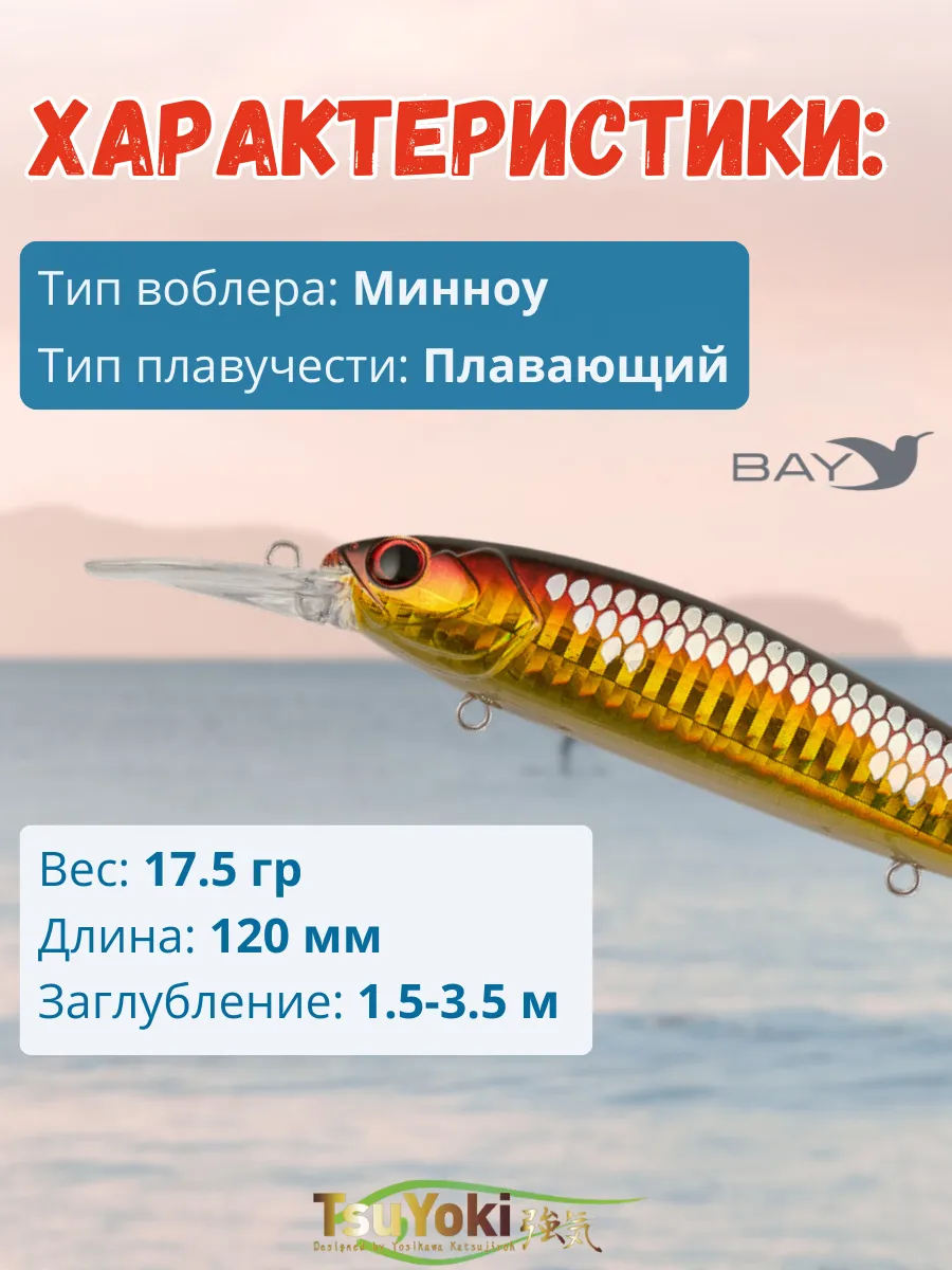 Воблер TsuYoki JASS SR 120F предназначен для ловли такой трофейной рыбы как судак, щука, сом методом троллинг. Также данной моделью можно ловить и "в заброс", равномерной проводкой, но надо помнить, что TsuYoki JASS SR 120F упористый воблер, поэтому надо подбирать удилище соответствующего теста. При отпуске шнура ( 0.2 мм ) около 40-метров и скорости катера 3.5 - 4.0 км / час - TsuYoki JASS SR 120F заглубляется до 4 метров, показывая при этом малоамплитудную высокочастотную игру, характерную для приманок хорошо работающих по судаку. Наилучших результатов воблер добивается, если во время проводки он будет время от времени касаться дна, выбивая муть со дна. Не надо бояться зацепов при этом.