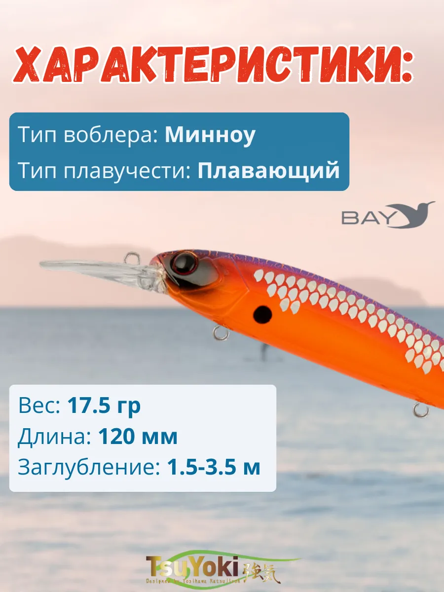 Воблер TsuYoki JASS SR 120F предназначен для ловли такой трофейной рыбы как судак, щука, сом методом троллинг. Также данной моделью можно ловить и "в заброс", равномерной проводкой, но надо помнить, что TsuYoki JASS SR 120F упористый воблер, поэтому надо подбирать удилище соответствующего теста. При отпуске шнура ( 0.2 мм ) около 40-метров и скорости катера 3.5 - 4.0 км / час - TsuYoki JASS SR 120F заглубляется до 4 метров, показывая при этом малоамплитудную высокочастотную игру, характерную для приманок хорошо работающих по судаку. Наилучших результатов воблер добивается, если во время проводки он будет время от времени касаться дна, выбивая муть со дна. Не надо бояться зацепов при этом.