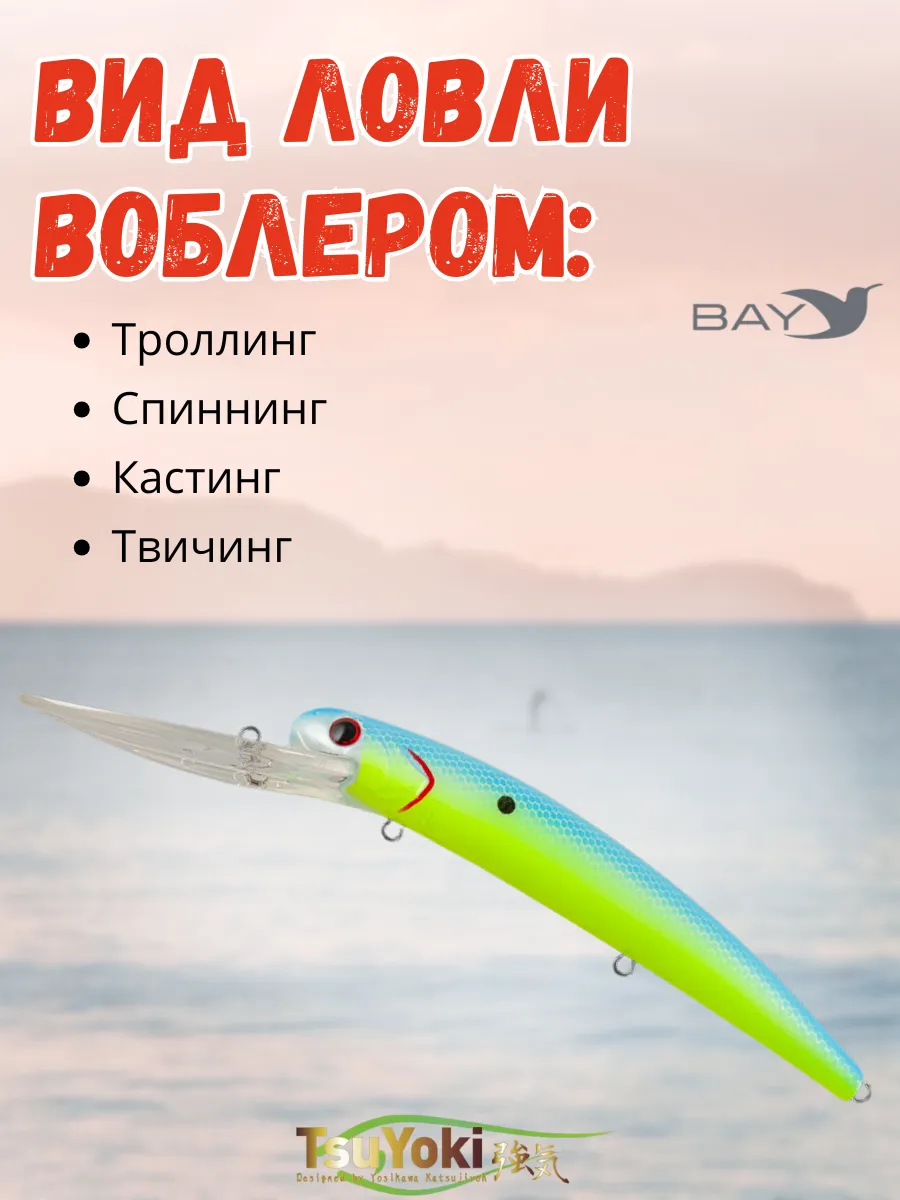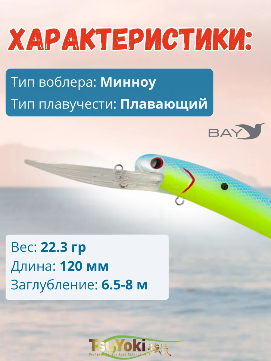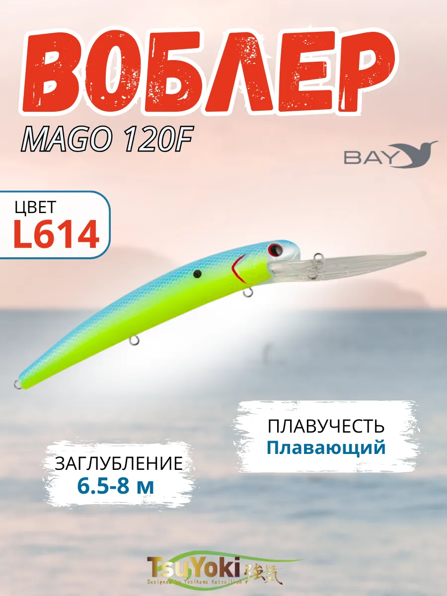 MAGO 120F имеет две, разделенные боковой линией, рельефные фактуры поверхности. Верхняя часть выполнена в виде чешуек, нижняя в виде косых насечек. Головная часть приманки выполнена в виде головы рыбки, с рельефными жаберными крышками и вклеенными крупными 3D-глазами. MAGO 120F имеет шумовую камеру, шары которой гремят при проводке, создавая дополнительный фактор привлечения для рыбы. Воблер оснащен мощной фурнитурой, заводными кольцами и тремя силовыми тройниками. при троллинге MAGO 120F создает мощные колебания, издалека привлекая хищную рыбу и провоцируя её на поклевку. Выбор места для ловли троллингом – важный фактор, влияющий на конечный результат рыбалки. Наиболее правильным будет облов бровок с глубинами, соответствующими рабочему диапазону MAGO 120F, как с движением катера против течения, так и по течению. Большой интерес представляют поливы с неоднородным рельефом (буграми и ямками) и наличием редких коряг, являющихся идеальным укрытием для хищников. Наличие на таком поливе стай кормовой рыбы увеличивает шансы на поклевку трофея.