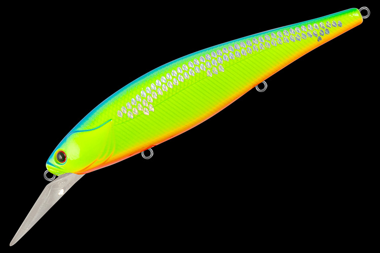 Особенности дизайна: MOVER MR 128 SP имеет две, разделенные боковой линией, рельефные фактуры поверхности. Верхняя часть выполнена в виде ромбовидных насечек - чешуек, нижняя (вплоть до брюшка) в виде косых насечек. Головная часть воблера имитирует жаберные крышки рыбки, а 3D глаза дополняют реалистичность дизайна приманки. MOVER MR 128 SP оснащен системой дальнего заброса и баланса. Вооружение приманки – три мощных тройника Cultiva Owner соответствующего размера, силовая фурнитура и заводные кольца . Присущее воблерам TsuYoki высококачественное ЛКП и широкая цветовая гамма.