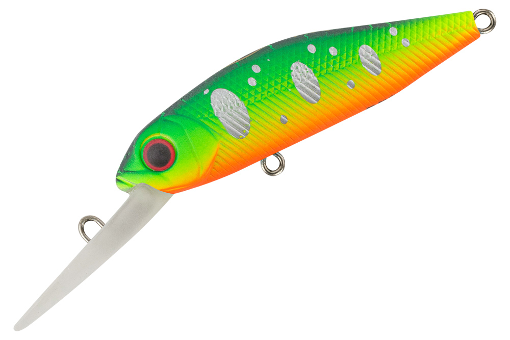 Воблер TsuYoki REBUS 55F Небольшой минноу для ловли хищника на рельефе, бровках с глубинами 1 - 2 метра, на кормовых поливах с фоновыми глубинами 2-3+ метра. Особенности дизайна : Поверхность тела REBUS 55F имеет две фактуры. Верхняя часть до боковой линии выполнена в виде ромбовидных насечек, а нижняя – оформлена косыми насечками. Крупная для такого размера воблера лопасть ( 25 мм в длину и 15 мм в самой широкой части) позволяет нам отнести приманку к категории диповых ( заглубляющихся). Вклеенные 3D глаза и головная часть воблера в виде реалистичной головы рыбки завершают целостность всего исполнения приманки. REBUS 55F оснащен двумя тройниками VMC BN и качественными заводными кольцами. Имеется система баланса (балансировочный грузик смещен к головной части), и система дальнего заброса ( в виде перекатывающегося в хвост приманки при забросе шара). Этот же шар при анимации создает шумовое сопровождение. Заброс и анимация: Благодаря системе дальнего заброса REBUS 55F улетает к отметке 30+ метров. В тесте на дальность использовался комплект: удилище 7,6 фута быстрого строя тестом до 21 гр. Катушка 3000 по линейке Шимано. Шнур #0,8. В работе с REBUS 55F нужно пробовать все методы анимации, применяемые с воблерами класса минноу. На равномерной проводке REBUS 55F имеет яркую собственную игру, по амплитудности не уступающую многим кренкам. Быстро выходит в свой рабочий горизонт заглубления и четко его выдерживает. Обязательно стоит использовать при ловле на REBUS 55F варинты анимации стоп-энд-гоу ( проводка или потяжки с паузами). Воблер в паузах медленно всплывает с остаточными колебаниями, что очень соблазнительно для всех хищников. Рывковая проводка так же возможна при работе с REBUS 55F. После рывка воблер четко выполняет глайд в сторону от оси проводки, разворачиваясь на 70-90 градусов и в паузе начинает всплывать. Так как приманка снабжена шумовой камерой , рывок с последующей паузой совершает два действия – привлечение рыбы колебаниями и стуком шаров в шумовой камере с последующим медленным и тихим всплытием. С продолжительностью пауз стоит поэкспериментировать… Целевые трофеи REBUS 55F – окунь, голавль, язь, щука. С «лайтовым» поводком из струны #1 длиной 12 см REBUS 55F сохраняет положительную плавучесть. Использование более тяжелых поводков резко снижает положительную плавучесть REBUS 55F . Комплект снастей: Удилище длиной 7,0-7,8 фута быстрого строя , тест до 15-18 гр, катушка 2000-2500 по линейке Шимано, шнур #0,6. Миноу Плавающий (F) 55 мм 6 гр Заглубление 1,2-1,8 м