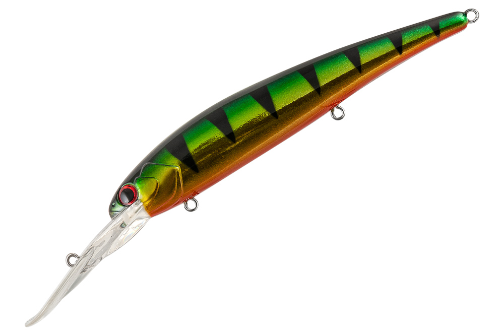 Воблер TsuYoki SOLOIST 120F Крупный минноу для ловли троллингом на неоднородном рельефе и свалах с глубинами 5-9 метров. Основные трофеи – судак,щука,сом. Особенности дизайна: SOLOIST 120F имеет полностью гладкую поверхность. Головная часть приманки выполнена в виде головы рыбки, с рельефными жаберными крышками и вклеенными 3D глазами. SOLOIST 120F имеет систему баланса, шары которой выполняют функцию шумовго сопровождения, создавая дополнительный фактор привлечения для хищников. Воблер оснащен мощной фурнитурой, силовыми заводными кольцами и тремя тройниками Cultiva Owner. Общее исполнение воблера и его ЛКП на высоком современном уровне. В каталоге широкий выбор расцветок. Анимация: При буксировке с помощью катера (троллинге) SOLOIST 120F совершает акцентированные колебания, издалека привлекающие хищников и провоцирующие их на поклевку. Выбор места для ловли троллингом – важный фактор, влияющий на конечный результат рыбалки. Правильным будет облов бровок с глубинами, соответствующими рабочему диапазону SOLOIST 120F, как с движением катера против течения, так и по течению. Нужно учитывать, что при движении по течению воблер будет заглубляться несколько больше, чем против. Так же интерес представляют поливы с неоднородным рельефом (буграми и ямками) и наличием редких коряг, являющихся идеальным укрытием для хищников. Непосредственно по коряге приманку проводить не стоит, но пройти недалеко от нее непременно нужно. Наличие на таком поливе стай кормовой рыбы будет дополнительным плюсом для успешной ловли. Контроль дна ловле троллингом обязателен. Только если воблер с некоторой периодичностью задевает лопастью дно, вы можете быть уверены, что длина отпуска приманки и скорость движения катера правильные. Троллинг – хороший помощник в поиске активной рыбы. Если в каком либо месте вашего маршрута случится поклевка или поимка судака на SOLOIST 120F , непременно стоит остановиться и обловить это место другими приманками (например , джиговыми), или диповыми моделями воблеров. Судак обычно охотится стаями, и поймав одного троллингом, вполне можно рассчитывать на несколько поклевок с этой же точки. Поводок при ловле троллингом обязателен. Желательно, чтобы он был не менее 40 см. Такая длина поводка защитит приманку при поклевках щуки на опережение, а так же при прохождении бровок и бугров, обросших ракушками. Чтобы не было обидных потерь приманок на зацепах, в лодке обязательно должен быть тяжелый ( 0,5-0,8 кг) глубоководный отцеп. Миноу Плавающий (F) 120 мм 20 гр Заглубление 6,5-8 м