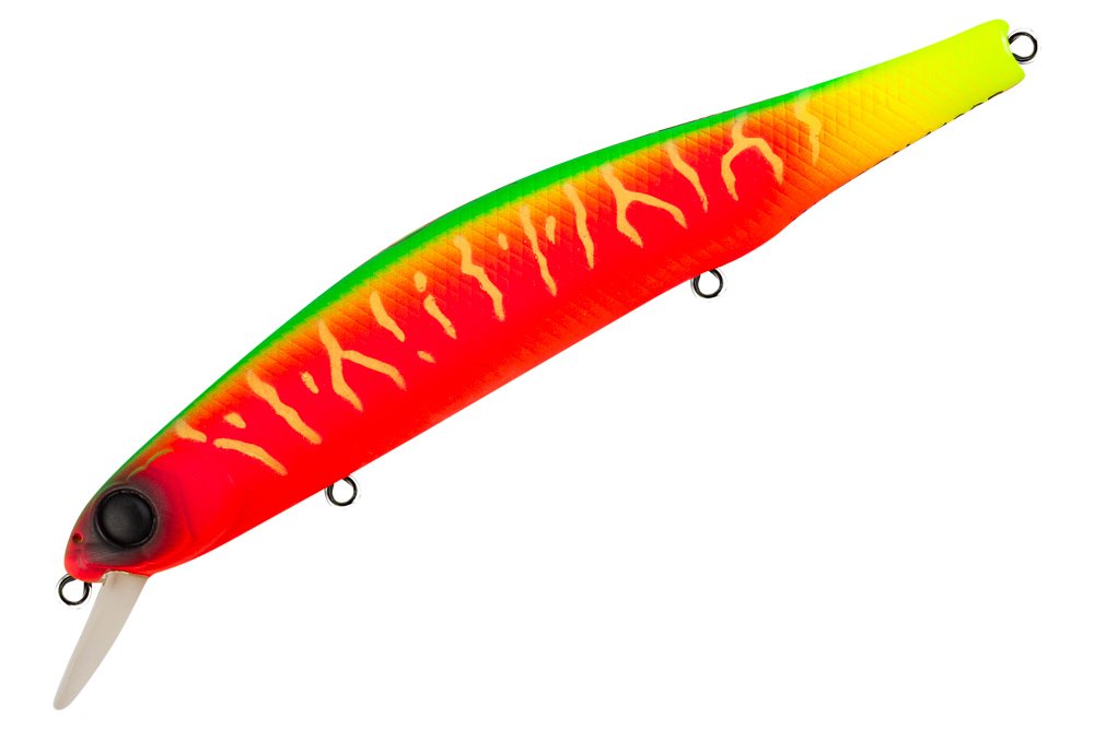 Воблер TsuYoki WATSON 110SP Минноу для облова больших водных территорий с фоновыми глубинами до 3.0 метров. Особенности дизайна: WATSON 110SP имеет две, разделенные боковой линией, рельефные фактуры поверхности. Верхняя часть выполнена в виде ромбовидных насечек , нижняя- в виде косых насечек. Головная часть воблера рельефно имитирует жаберные крышки рыбки, а 3D глаза дополняют реалистичность дизайна всей приманки. WATSON 110SP оснащен магнитной системой дальнего заброса и системой балансировки. Вооружение приманки - три тройника Owner Cultiva соответствующего размера. Качественное ЛКП, соответствующее современным стандартам. Заброс и анимация : WATSON 110SP мы относим к рекордсменам по дальности заброса.В отдельных попытках были зафиксированы результаты превышающие 53 метра. В среднем же WATSON 110SP стабильно показывает длину заброса +45 метров. Столь выдающиеся параметры полета стали возможны благодаря сбалансированной магнитной системе дальнего заброса, маленькой лопате и отличной геометрии приманки. . Тесты на дальность проводились с комплектом: Удилище длиной 7,8 фута быстрого строя , тест 12- 32 гр, катушка 3000С по линейке Шимано, шнур #0,6. Для WATSON 110SP применимы все варианты проводок, от равномерной до рывковой. На равномерной проводке воблер имеет выраженную собственную игру,активно раскачиваясь с боку на бок и виляя хвостовой частью. При проводке стоп-энд-гоу WATSON 110SP на активной фазе роллингует, и устойчиво зависает в паузе, качнув пару раз боками. На рывковой анимации воблер показал себя очень послушным и чутким к каждой манипуляции удилищем. Анимация возможна как мягкими (почти как протяжка) рывками, так и низкоамплитудными резкими рывочками. При них воблер крутится почти на месте, разворачиваясь на 90+ градусов, и эффектно зависает в паузе. Применение легкого поводка # 2 длиной 15 см не оказывает влияния на анимацию. Комплект снастей: Благодаря небольшой лопате WATSON 110SP можно анимировать практически любым удилищем подходящего теста, но наиболее яркую игру наш воблер показывает с удилищем длиной 7,0- 7,8 фута быстрого строя , с тестом до 21 гр, катушка 2000-3000, шнур #0,6-0,8. Миноу Суспендер (SP) 110 мм 17,5 гр Заглубление 0,8-1,2 м