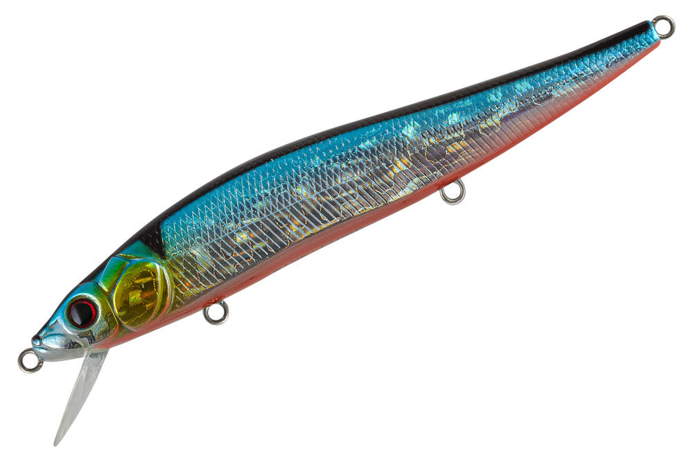 Воблер TsuYoki WINK 110SP Среднеразмерный минноу для ловли на кормовых поливах, вдоль стенок водной растительности и над мелководными коряжниками с глубинами до 2,5-3,5 метров. Особенности дизайна: WINK 110SP имеет две, разделенные боковой линией, рельефные фактуры поверхности. Верхняя часть выполнена в виде ромбовидных насечек - чешуек, нижняя (вплоть до брюшка) в виде косых насечек. Головная часть воблера рельефно имитирует жаберные крышки рыбки, а вклеенные 3D глаза завершают дизайн приманки. Воблер имеет систему дальнего заброса и баланса, и оснащен тремя тройниками Cultiva Owner, а так же силовыми заводными кольцами. В каталоге широкий выбор цветов, от провоцирующих до натуральных. Качество ЛКП на высоком современном уровне. Заброс и анимация : Заброс WINK 110SP достаточно дальний. Воблер улетает на 35+ метров, чего вполне достаточно, учитывая его основное предназначение. С WINK 110SP применимы все варианты анимации, присущие воблерам этого класса. На равномерной проводке он имеет приятную собственную игру, переваливаясь с боку на бок вдоль своей продольной оси. Вариации на тему стоп энд гоу и протяжки различной степени интенсивности и протяженности – отличные приемы для ловли с WINK 110SP. На рывковой проводке воблер не проявляет заметной упористости, все приемы с ним выполняются легко и без перенапряжения. При рывках WINK 110SP рыскает в обе стороны с разворотами до 90 градусов, бликует боками и активно колеблется вдоль продольной оси. В паузе зависает с небольшим дифферентом на нос. Во всех вариантах анимации WINK 110SP прекрасно контролируем и отлично держит заданный горизонт проводки. С поводком 20 см из струны №2 WINK 110SP – чистый суспендер. Наличие поводка не влияет на игру воблера. Поводок обязателен, так как щука является основным целевым трофеем этого воблера. Комплект снастей: Удилище длиной 7,0-8,0 фута быстрого строя , тест до 30-35 гр, катушка 3000 по линейке Шимано, шнур #1,2. Вести с водоёмов: Побросать оба воблера получилось только один раз, поэтому, об уловистости говорить рано. Тем не менее, никаких претензий по собственной игре и отзывчивости на рывок не возникло. WATSON 110SP делался очень долго и в продажу поступил совсем недавно, а WINK 110SP уже успел заработать добрую репутацию на Москве-реке, где хорошо показал себя по ночному судаку. Выявился и характерный недостаток: при ударе о камни нередко отламывается лопатка. Но камни – это, конечно, очень жестко. Миноу Суспендер (SP) 110 мм 15 гр Заглубление 1,2-1,8 м