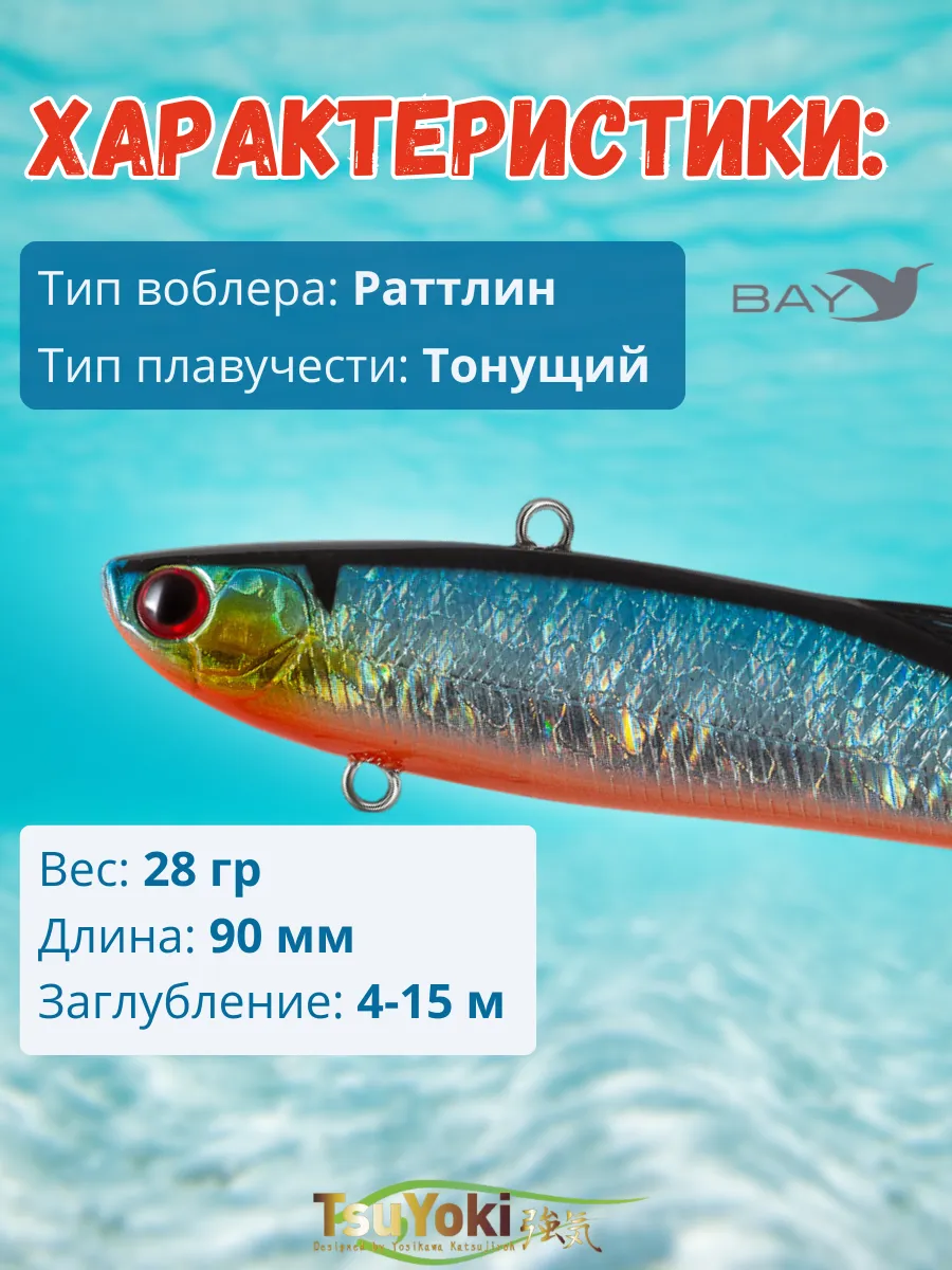 Раттлин TsuYoki STRATEG 90S Еще один воблер класса VIB из коллекции TsuYoki. Предназначен, как и его собратья по каталогу, для ловли на больших глубинах и течении «в заброс» и вертикальным джигингом. Целевые трофеи – судак, берш, сом , щука и крупный окунь. Особенности дизайна: STRATEG 90S имеет две, разделенные боковой линией, рельефные фактуры поверхности. Верхняя часть выполнена в виде ромбовидных насечек - чешуек, нижняя (вплоть до брюшка) в виде косых насечек. Головная часть воблера рельефно имитирует жаберные крышки, а вклеенные 3D глаза завершают реалистичный внешний вид приманки. В тело приманки встроена шумовая камера, создающая дополнительный звуковой раздражитель при работе VIBа. STRATEG 90S оснащен двумя тройниками соответствующего размера, а так же надежной фурнитурой и силовыми заводными кольцами. Качественное лако-красочное покрытие и широкая цветовая гамма. Анимация: Как и с другими приманками этого класса, представленными в каталоге TsuYoki, с STRATEG 90S возможны два базовых вида проводки – равномерная и ступенчатая. При равномерной проводке стоит задача обеспечить прохождение приманки вблизи выбранных для облова структур рельефа. STRATEG 90S имеет значительный вес, и глубины, на которых им комфортно ловить, начинаются с 4-6 метров и глубже. На меньших глубинах ловить им будет некомфортно. При медленной скорости проводки можно облавливать глубинные бровки и другие структуры донного рельефа до 12-16 метров. В анимацию можно привнести рывковую составляющую и разнообразные подбросы приманки удилищем.. Второй базовой анимацией для STRATEG 90S является ступенчатая проводка. Глубины ловли от 4-6 и до 15 метров и глубже (в зависимости от наличия течения и его силы). Проводку осуществляем катушкой, делая от одного до пяти оборотов (в зависимости от глубины ловли). Задача - обеспечить падение приманки на дно с достаточной ( от одной до трех секунд) паузой в каждом цикле проводки.
