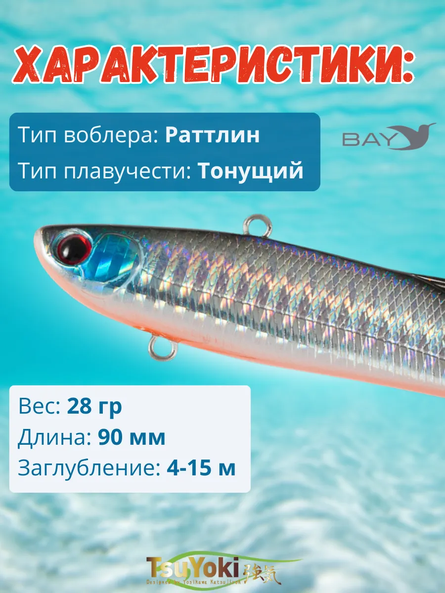 Раттлин TsuYoki STRATEG 90S Еще один воблер класса VIB из коллекции TsuYoki. Предназначен, как и его собратья по каталогу, для ловли на больших глубинах и течении «в заброс» и вертикальным джигингом. Целевые трофеи – судак, берш, сом , щука и крупный окунь. Особенности дизайна: STRATEG 90S имеет две, разделенные боковой линией, рельефные фактуры поверхности. Верхняя часть выполнена в виде ромбовидных насечек - чешуек, нижняя (вплоть до брюшка) в виде косых насечек. Головная часть воблера рельефно имитирует жаберные крышки, а вклеенные 3D глаза завершают реалистичный внешний вид приманки. В тело приманки встроена шумовая камера, создающая дополнительный звуковой раздражитель при работе VIBа. STRATEG 90S оснащен двумя тройниками соответствующего размера, а так же надежной фурнитурой и силовыми заводными кольцами. Качественное лако-красочное покрытие и широкая цветовая гамма. Анимация: Как и с другими приманками этого класса, представленными в каталоге TsuYoki, с STRATEG 90S возможны два базовых вида проводки – равномерная и ступенчатая. При равномерной проводке стоит задача обеспечить прохождение приманки вблизи выбранных для облова структур рельефа. STRATEG 90S имеет значительный вес, и глубины, на которых им комфортно ловить, начинаются с 4-6 метров и глубже. На меньших глубинах ловить им будет некомфортно. При медленной скорости проводки можно облавливать глубинные бровки и другие структуры донного рельефа до 12-16 метров. В анимацию можно привнести рывковую составляющую и разнообразные подбросы приманки удилищем.. Второй базовой анимацией для STRATEG 90S является ступенчатая проводка. Глубины ловли от 4-6 и до 15 метров и глубже (в зависимости от наличия течения и его силы). Проводку осуществляем катушкой, делая от одного до пяти оборотов (в зависимости от глубины ловли). Задача - обеспечить падение приманки на дно с достаточной ( от одной до трех секунд) паузой в каждом цикле проводки.