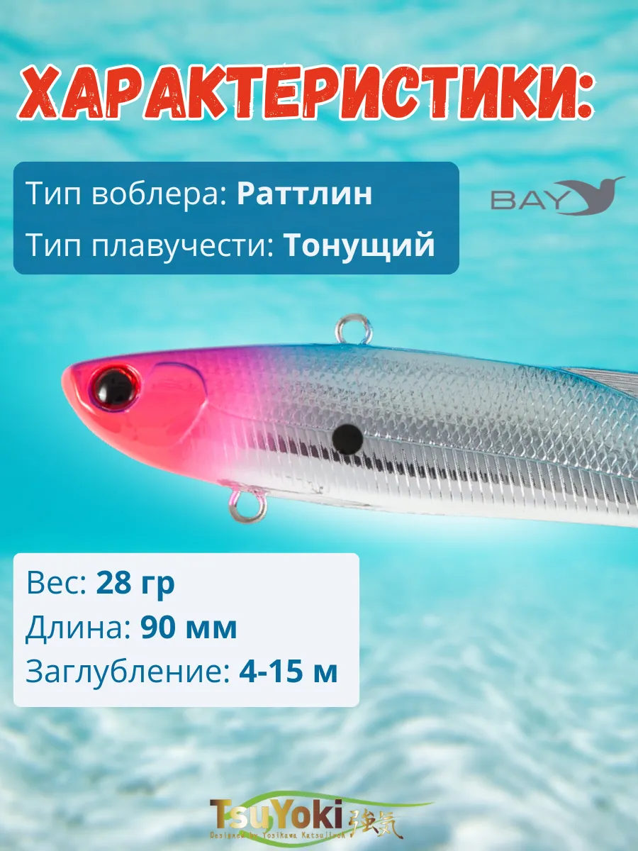 Раттлин TsuYoki STRATEG 90S Еще один воблер класса VIB из коллекции TsuYoki. Предназначен, как и его собратья по каталогу, для ловли на больших глубинах и течении «в заброс» и вертикальным джигингом. Целевые трофеи – судак, берш, сом , щука и крупный окунь. Особенности дизайна: STRATEG 90S имеет две, разделенные боковой линией, рельефные фактуры поверхности. Верхняя часть выполнена в виде ромбовидных насечек - чешуек, нижняя (вплоть до брюшка) в виде косых насечек. Головная часть воблера рельефно имитирует жаберные крышки, а вклеенные 3D глаза завершают реалистичный внешний вид приманки. В тело приманки встроена шумовая камера, создающая дополнительный звуковой раздражитель при работе VIBа. STRATEG 90S оснащен двумя тройниками соответствующего размера, а так же надежной фурнитурой и силовыми заводными кольцами. Качественное лако-красочное покрытие и широкая цветовая гамма. Анимация: Как и с другими приманками этого класса, представленными в каталоге TsuYoki, с STRATEG 90S возможны два базовых вида проводки – равномерная и ступенчатая. При равномерной проводке стоит задача обеспечить прохождение приманки вблизи выбранных для облова структур рельефа. STRATEG 90S имеет значительный вес, и глубины, на которых им комфортно ловить, начинаются с 4-6 метров и глубже. На меньших глубинах ловить им будет некомфортно. При медленной скорости проводки можно облавливать глубинные бровки и другие структуры донного рельефа до 12-16 метров. В анимацию можно привнести рывковую составляющую и разнообразные подбросы приманки удилищем.. Второй базовой анимацией для STRATEG 90S является ступенчатая проводка. Глубины ловли от 4-6 и до 15 метров и глубже (в зависимости от наличия течения и его силы). Проводку осуществляем катушкой, делая от одного до пяти оборотов (в зависимости от глубины ловли). Задача - обеспечить падение приманки на дно с достаточной ( от одной до трех секунд) паузой в каждом цикле проводки.
