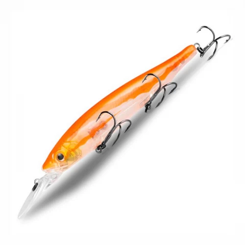 Беркинг Аюджа Рест 128SP - это диповая модель, предназначенная для охоты за щукой и судаком, притаившимися на глубине в поздний осенний период. Воблер Bearking Ayuja Rest 128SP имеет изящно вытянутое, продолговатое тело, оснащается мощной длинной лопастью и тремя острыми тройниками, так же имеет в своей конструкции магнитную систему дальнего заброса, благодаря чему приманку можно забросить на дальние дистанции. Несмотря на наличие трех металлических шариков в этой системе, воблер довольно тихий и не производит громкого шума во время проводки. При твичинговой анимации шары начинают перемещаться по каналу, что придает игре приманки большую интенсивность и хаотичность. Воблер Bearking Ayuja Rest 128SP так же оснащен огрузкой в виде двух металлических шариков, стационарно расположенных в головной и хвостовой части приманки. На рывках воблер играет очень активно, двигаясь по широкой траектории и красиво покачивая боками. Заявленное производителем заглубление воблера - 2,5 метра, но результаты множества “полевых” испытаний показали, что Rest способен заглубиться до 3 и более метров. Для лучшей анимации этого воблера следует применять твичинг различной интенсивности с паузами.