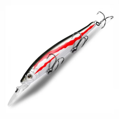 Беркинг Аюджа Рест 128SP - это диповая модель, предназначенная для охоты за щукой и судаком, притаившимися на глубине в поздний осенний период. Воблер Bearking Ayuja Rest 128SP имеет изящно вытянутое, продолговатое тело, оснащается мощной длинной лопастью и тремя острыми тройниками, так же имеет в своей конструкции магнитную систему дальнего заброса, благодаря чему приманку можно забросить на дальние дистанции. Несмотря на наличие трех металлических шариков в этой системе, воблер довольно тихий и не производит громкого шума во время проводки. При твичинговой анимации шары начинают перемещаться по каналу, что придает игре приманки большую интенсивность и хаотичность. Воблер Bearking Ayuja Rest 128SP так же оснащен огрузкой в виде двух металлических шариков, стационарно расположенных в головной и хвостовой части приманки. На рывках воблер играет очень активно, двигаясь по широкой траектории и красиво покачивая боками. Заявленное производителем заглубление воблера - 2,5 метра, но результаты множества “полевых” испытаний показали, что Rest способен заглубиться до 3 и более метров. Для лучшей анимации этого воблера следует применять твичинг различной интенсивности с паузами.