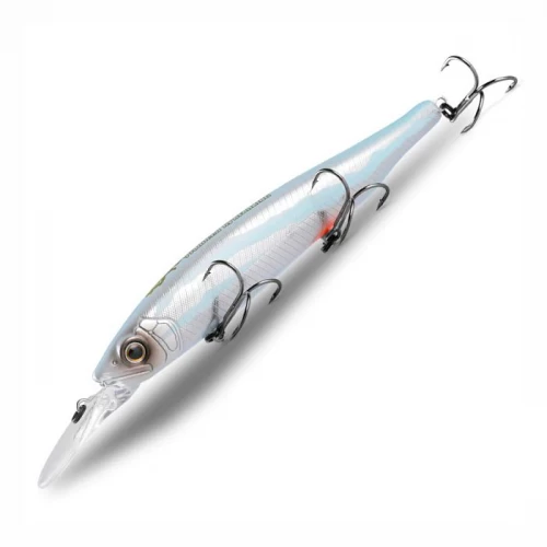 Беркинг Аюджа Рест 128SP - это диповая модель, предназначенная для охоты за щукой и судаком, притаившимися на глубине в поздний осенний период. Воблер Bearking Ayuja Rest 128SP имеет изящно вытянутое, продолговатое тело, оснащается мощной длинной лопастью и тремя острыми тройниками, так же имеет в своей конструкции магнитную систему дальнего заброса, благодаря чему приманку можно забросить на дальние дистанции. Несмотря на наличие трех металлических шариков в этой системе, воблер довольно тихий и не производит громкого шума во время проводки. При твичинговой анимации шары начинают перемещаться по каналу, что придает игре приманки большую интенсивность и хаотичность. Воблер Bearking Ayuja Rest 128SP так же оснащен огрузкой в виде двух металлических шариков, стационарно расположенных в головной и хвостовой части приманки. На рывках воблер играет очень активно, двигаясь по широкой траектории и красиво покачивая боками. Заявленное производителем заглубление воблера - 2,5 метра, но результаты множества “полевых” испытаний показали, что Rest способен заглубиться до 3 и более метров. Для лучшей анимации этого воблера следует применять твичинг различной интенсивности с паузами.