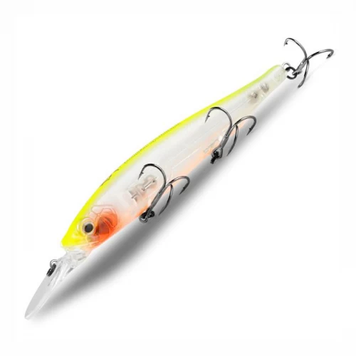 Беркинг Аюджа Рест 128SP - это диповая модель, предназначенная для охоты за щукой и судаком, притаившимися на глубине в поздний осенний период. Воблер Bearking Ayuja Rest 128SP имеет изящно вытянутое, продолговатое тело, оснащается мощной длинной лопастью и тремя острыми тройниками, так же имеет в своей конструкции магнитную систему дальнего заброса, благодаря чему приманку можно забросить на дальние дистанции. Несмотря на наличие трех металлических шариков в этой системе, воблер довольно тихий и не производит громкого шума во время проводки. При твичинговой анимации шары начинают перемещаться по каналу, что придает игре приманки большую интенсивность и хаотичность. Воблер Bearking Ayuja Rest 128SP так же оснащен огрузкой в виде двух металлических шариков, стационарно расположенных в головной и хвостовой части приманки. На рывках воблер играет очень активно, двигаясь по широкой траектории и красиво покачивая боками. Заявленное производителем заглубление воблера - 2,5 метра, но результаты множества “полевых” испытаний показали, что Rest способен заглубиться до 3 и более метров. Для лучшей анимации этого воблера следует применять твичинг различной интенсивности с паузами.