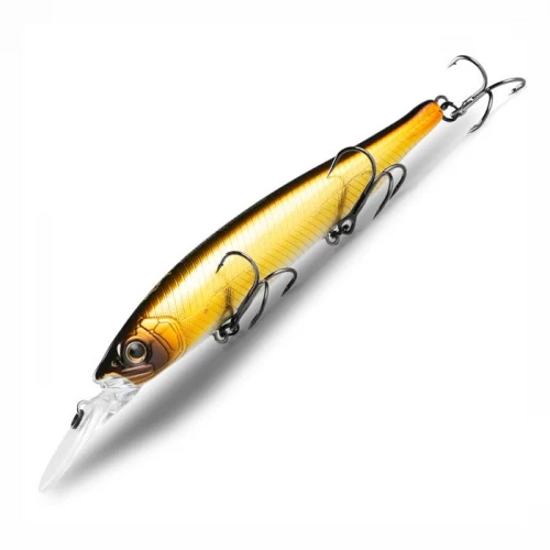 Беркинг Аюджа Рест 128SP - это диповая модель, предназначенная для охоты за щукой и судаком, притаившимися на глубине в поздний осенний период. Воблер Bearking Ayuja Rest 128SP имеет изящно вытянутое, продолговатое тело, оснащается мощной длинной лопастью и тремя острыми тройниками, так же имеет в своей конструкции магнитную систему дальнего заброса, благодаря чему приманку можно забросить на дальние дистанции. Несмотря на наличие трех металлических шариков в этой системе, воблер довольно тихий и не производит громкого шума во время проводки. При твичинговой анимации шары начинают перемещаться по каналу, что придает игре приманки большую интенсивность и хаотичность. Воблер Bearking Ayuja Rest 128SP так же оснащен огрузкой в виде двух металлических шариков, стационарно расположенных в головной и хвостовой части приманки. На рывках воблер играет очень активно, двигаясь по широкой траектории и красиво покачивая боками. Заявленное производителем заглубление воблера - 2,5 метра, но результаты множества “полевых” испытаний показали, что Rest способен заглубиться до 3 и более метров. Для лучшей анимации этого воблера следует применять твичинг различной интенсивности с паузами.
