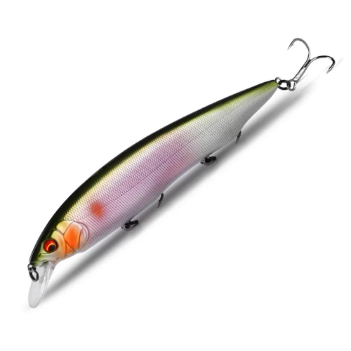 Беркинг Каната 160 F - это реплика на знаменитый бигминноу Megabass Kanata 160F. Приманка несмотря на свой большой вес, получилась совершенно неупористой. Лучший способ анимации для Канаты — это твичинг, но благодаря своему высокому и плоскому телу имеет выразительную низкочастотную игру на равномерной проводке, имитируя упитанную рыбку, которая вальяжно переваливая боками проплывает по водоему. Отлично собирает разнокалиберную щуку в течении всего сезона открытой воды.