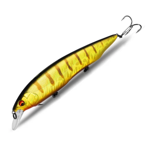 Беркинг Каната 160 F - это реплика на знаменитый бигминноу Megabass Kanata 160F. Приманка несмотря на свой большой вес, получилась совершенно неупористой. Лучший способ анимации для Канаты — это твичинг, но благодаря своему высокому и плоскому телу имеет выразительную низкочастотную игру на равномерной проводке, имитируя упитанную рыбку, которая вальяжно переваливая боками проплывает по водоему. Отлично собирает разнокалиберную щуку в течении всего сезона открытой воды.