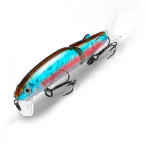 Приманка состоит из двух частей, каждая из которых подвижна. Так же в комплект входят два силиконовых хвостика. Тип копии – минноу. Длина приманки - 113 мм. Вес - 13 грамм. Заглубление 0,1-0,5 м. Размер приманки супер универсальный, отлично подойдет как для щуки, так и для другой хищной рыбы. Копия проста в использовании, не требовательна к строю спиннинга и навыкам рыболова. Идеально работает в окнах кувшинки и над травой на мелководье. Работает полный сезон открытой воды.
