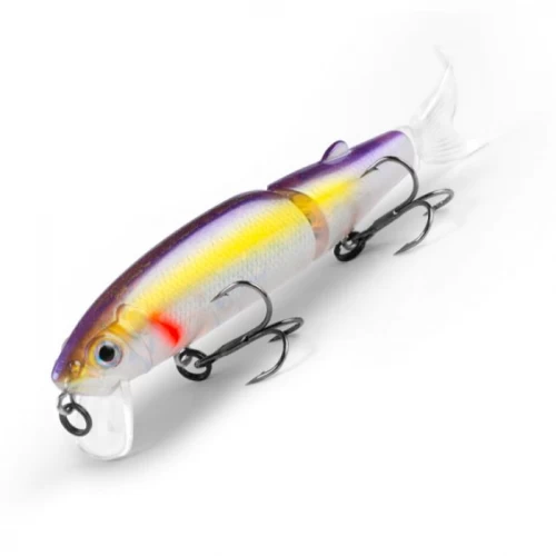 Приманка состоит из двух частей, каждая из которых подвижна. Так же в комплект входят два силиконовых хвостика. Тип копии – минноу. Длина приманки - 113 мм. Вес - 13 грамм. Заглубление 0,1-0,5 м. Размер приманки супер универсальный, отлично подойдет как для щуки, так и для другой хищной рыбы. Копия проста в использовании, не требовательна к строю спиннинга и навыкам рыболова. Идеально работает в окнах кувшинки и над травой на мелководье. Работает полный сезон открытой воды.