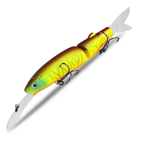 Благодаря своему двух составному телу и силиконовому хвостику эта приманка способна вывести из равновесия любого хищника на простой равномерной проводке, так же отлично зарекомендовала себя при ловле троллингом. Но конечно же самой эффективной проводкой будет медленный твичинг. Короткие, легкие рывочки можно чередовать с протяжками и шевелениями на паузе. Воблер не упорист, поэтому не требует специальной снасти. Отлично собирает щуку, крупного окуня и другую хищную рыбу в течении всего сезона открытой воды. Ну и конечно же одно из главных достоинств данной приманки — это его не высокая цена.
