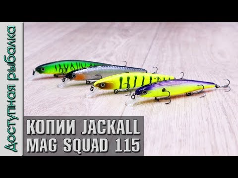 BearKing MagSquad 115F (реплика на Jackall MagSquad 115) имеет длину 115 мм, вес 16 грамм, заглубление от 0,6 до 1 метра. Тип плавучести - плавающий (floating). Тип воблера - минноу (minnow).