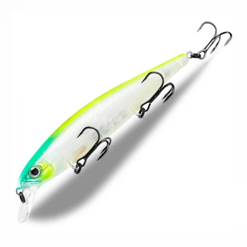 Беркинг МагСквад 115 при твичинговой проводке очень чувствителен к любым движениям спиннинга. На резких рывках создает очень сильные вибрации в воде, распространяемые на дальние дистанции, что привлекает хищника с большого расстояния. На паузах во время проводки выполняет угасающие покачивающие движения из стороны в сторону.