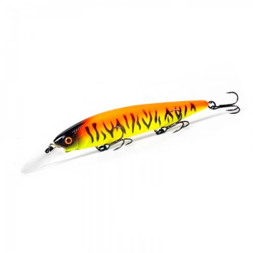 Беркинг Мо-До Фейз 115SF имеет не совсем классическую форму тела. Это довольно крупный и вытянутый воблер минноу, с большой лопаткой. Благодаря своей лопасти, приманка очень быстро уходит под воду на глубину до двух-трех метров. Тип плавучести - медленно всплывающий, такое свойство очень ценно при ловле на участках, которые заросли травой. Лучший способ анимации Bearking Mo-Do Faith 115SF - это твичинг. При жесткой и агрессивной рывковой проводке, приманка останавливается с разворотом на 180 градусов и абсолютно точно повторяет движения живой рыбешки. На паузах довольно медленно всплывает, при этом покачивая корпусом. Основные объекты лова, которые попадаются на воблер Bearking Mo-Do Faith 115SF - это крупный окунь, щука, жерех.