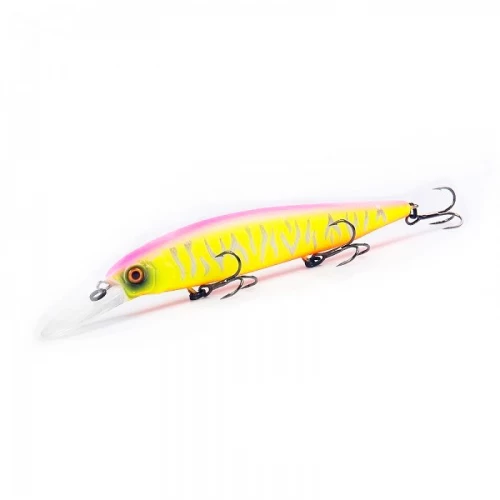 Беркинг Мо-До Фейз 115SF имеет не совсем классическую форму тела. Это довольно крупный и вытянутый воблер минноу, с большой лопаткой. Благодаря своей лопасти, приманка очень быстро уходит под воду на глубину до двух-трех метров. Тип плавучести - медленно всплывающий, такое свойство очень ценно при ловле на участках, которые заросли травой. Лучший способ анимации Bearking Mo-Do Faith 115SF - это твичинг. При жесткой и агрессивной рывковой проводке, приманка останавливается с разворотом на 180 градусов и абсолютно точно повторяет движения живой рыбешки. На паузах довольно медленно всплывает, при этом покачивая корпусом. Основные объекты лова, которые попадаются на воблер Bearking Mo-Do Faith 115SF - это крупный окунь, щука, жерех.