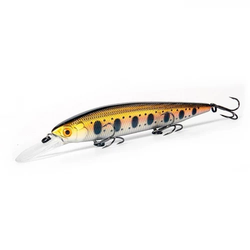 Беркинг Мо-До Фейз 115SF имеет не совсем классическую форму тела. Это довольно крупный и вытянутый воблер минноу, с большой лопаткой. Благодаря своей лопасти, приманка очень быстро уходит под воду на глубину до двух-трех метров. Тип плавучести - медленно всплывающий, такое свойство очень ценно при ловле на участках, которые заросли травой. Лучший способ анимации Bearking Mo-Do Faith 115SF - это твичинг. При жесткой и агрессивной рывковой проводке, приманка останавливается с разворотом на 180 градусов и абсолютно точно повторяет движения живой рыбешки. На паузах довольно медленно всплывает, при этом покачивая корпусом. Основные объекты лова, которые попадаются на воблер Bearking Mo-Do Faith 115SF - это крупный окунь, щука, жерех.