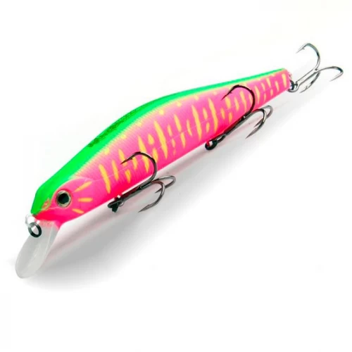 Этот воблер класса минноу имеет встроенную магнитную систему дальнего заброса(такую же как и у оригинала), что позволит вам добрасывать к самым отдаленным и зачастую наиболее перспективным местам на водоеме. Особенности конструкции данного воблера позволяют реализовать весь его потенциал в рывковых проводках. Именно твичинговая анимация является наиболее эффективной при ловле крупной щуки с Беркинг Orbit 130SP.